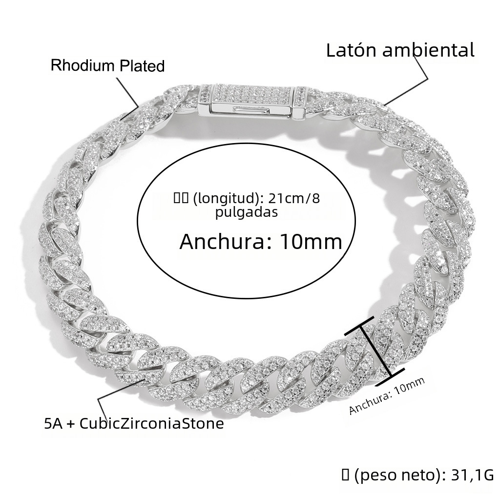 Collar europeo y americano 10mm doble fila circón cadena cubana collar de los hombres personalidad hip hop joyería de moda transfronteriza venta al por mayor