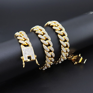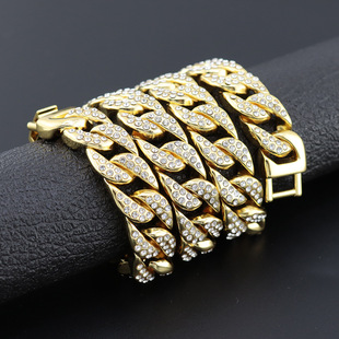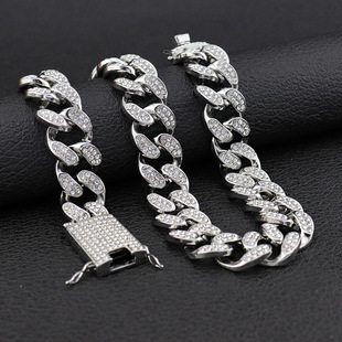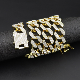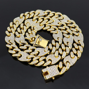 Europeo y americano exagerado hip hop audaz diamante collar completo plateado oro de los hombres hiphop cadena cubana ancho 20mm Amazon