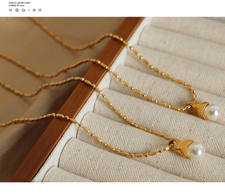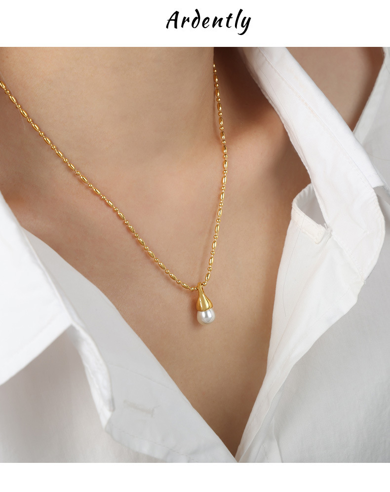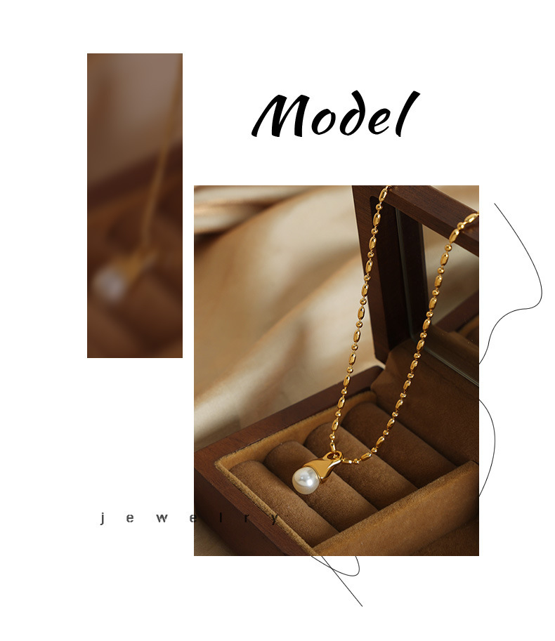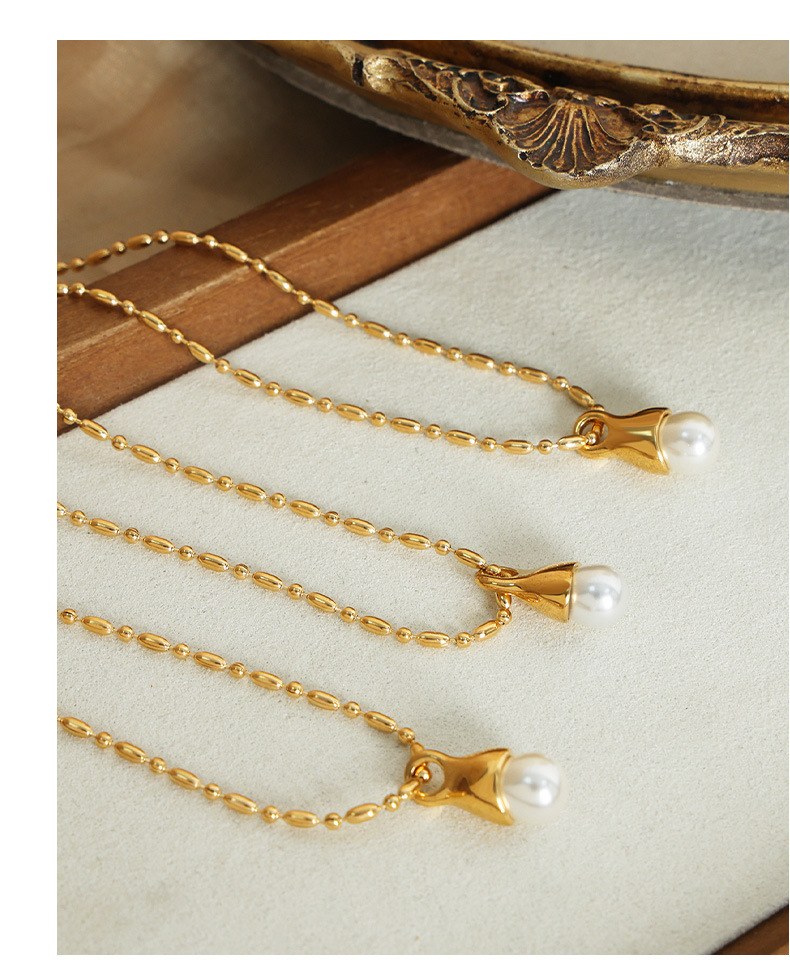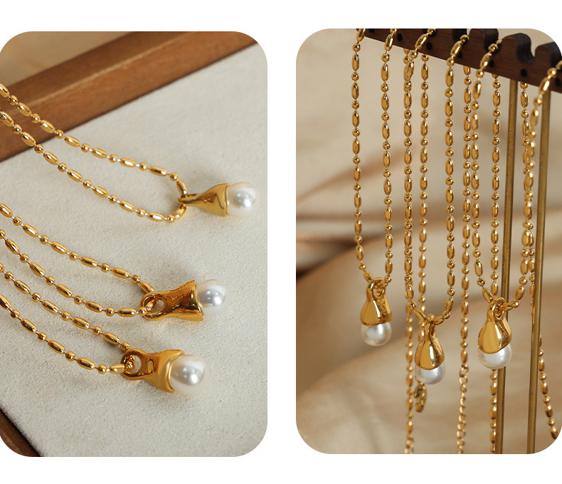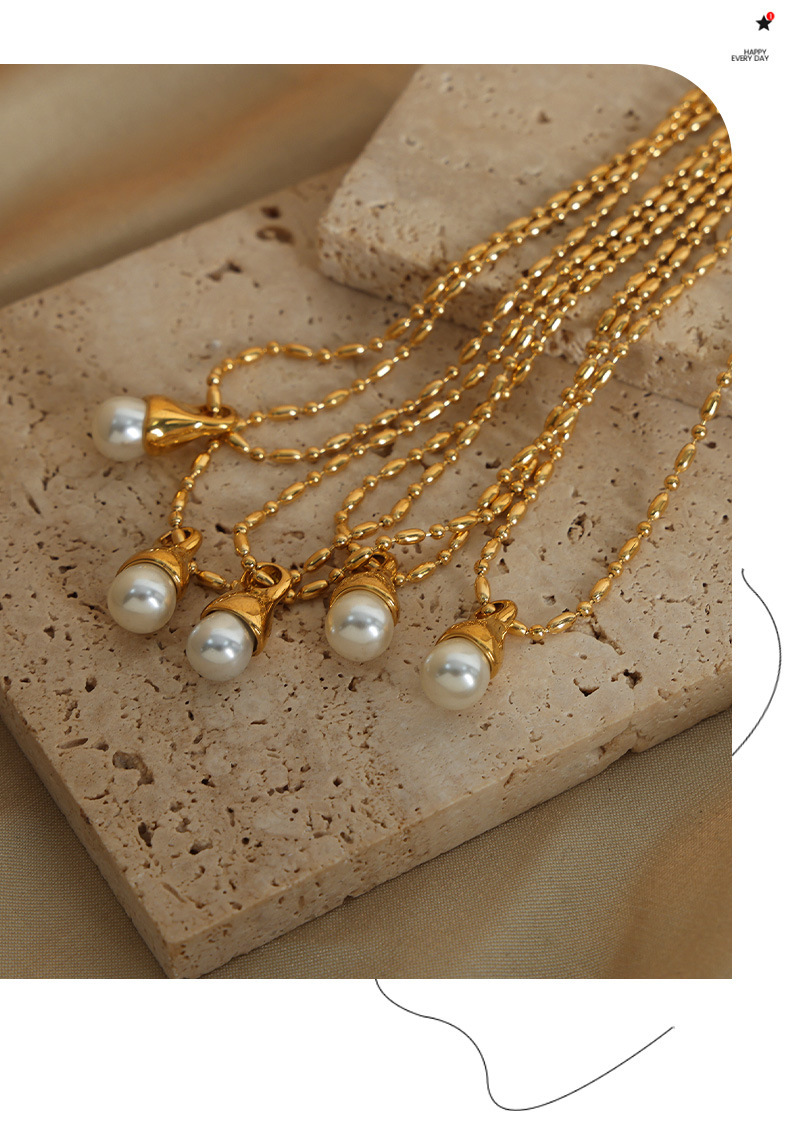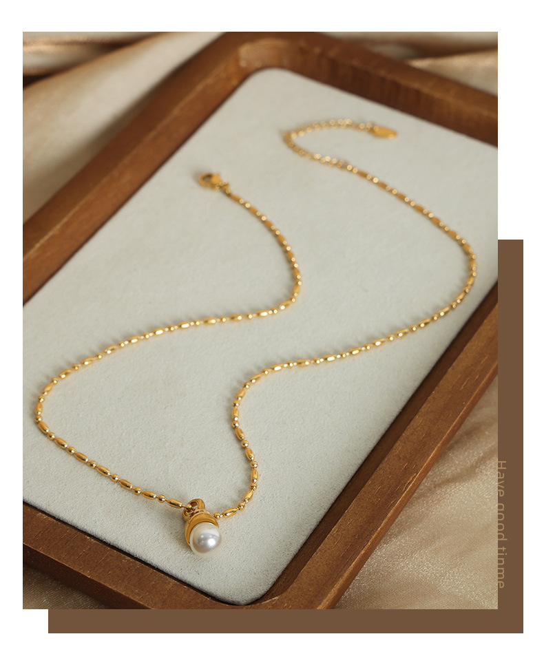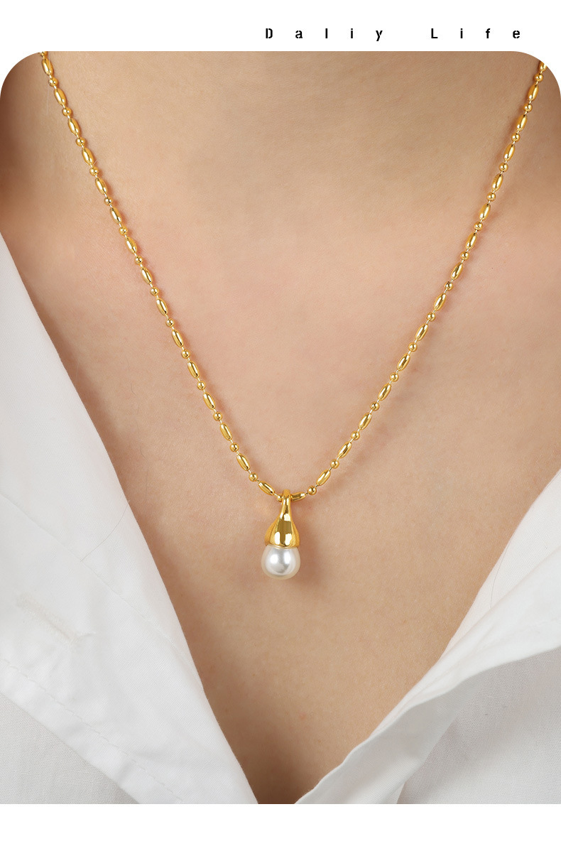 Collar de cadena de cuentas de arroz de lujo de estilo francés collar de cadena de cuentas de titanio de acero 18K colgante de cuentas de Concha de Oro Cadena de clavícula Reina occidental madre todo partido joyería al por mayor