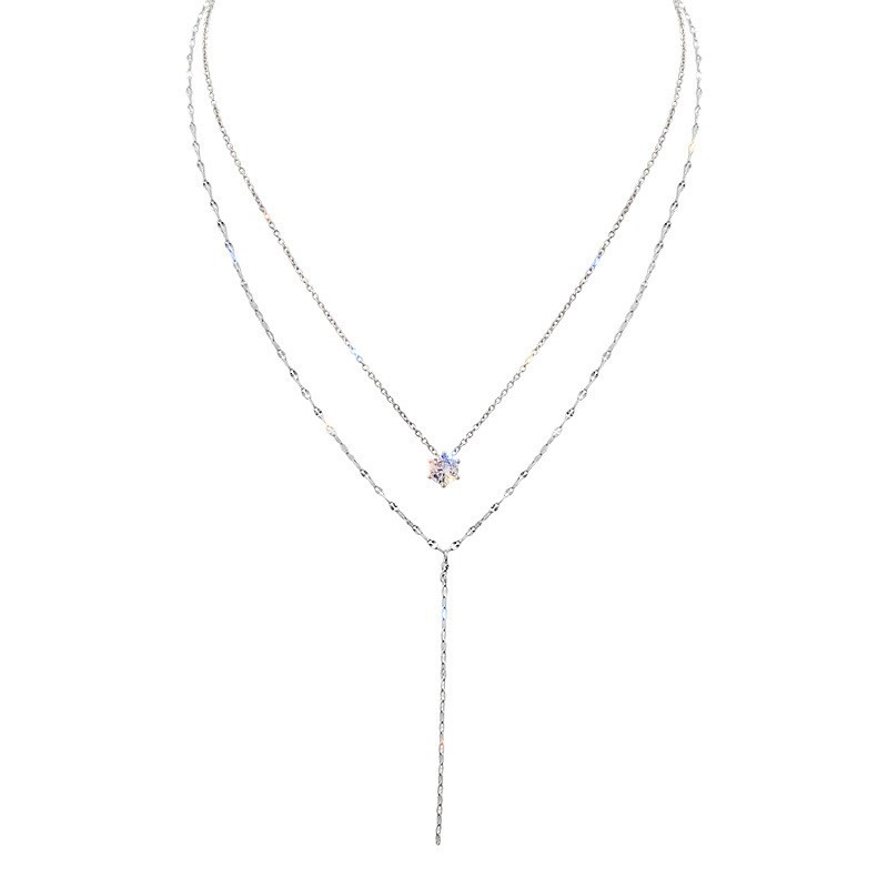 De gama alta larga y en forma de borla collar de diamantes de imitación nicho femenino Luz de lujo de doble capa de cadena de clavícula sexy exquisito collar de moda