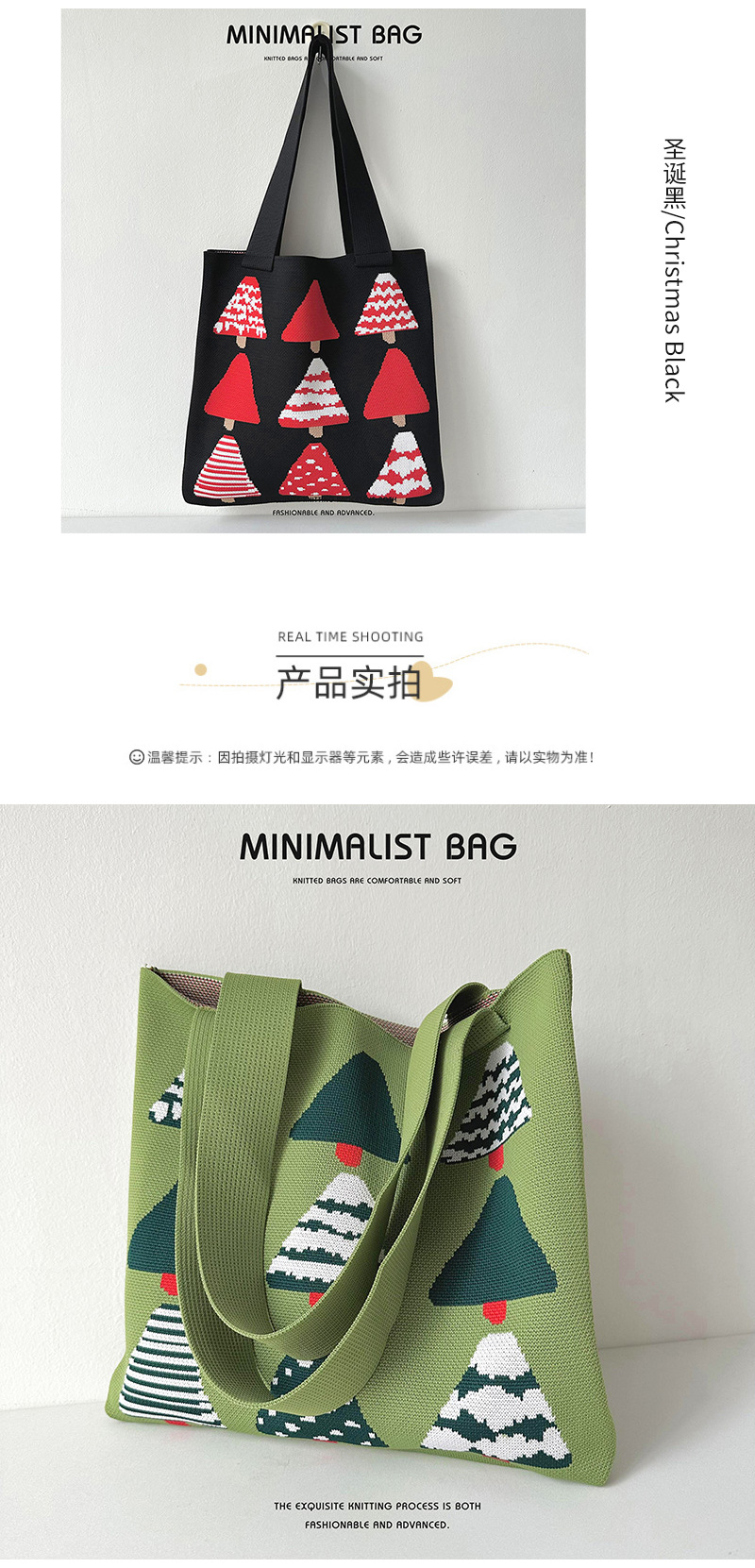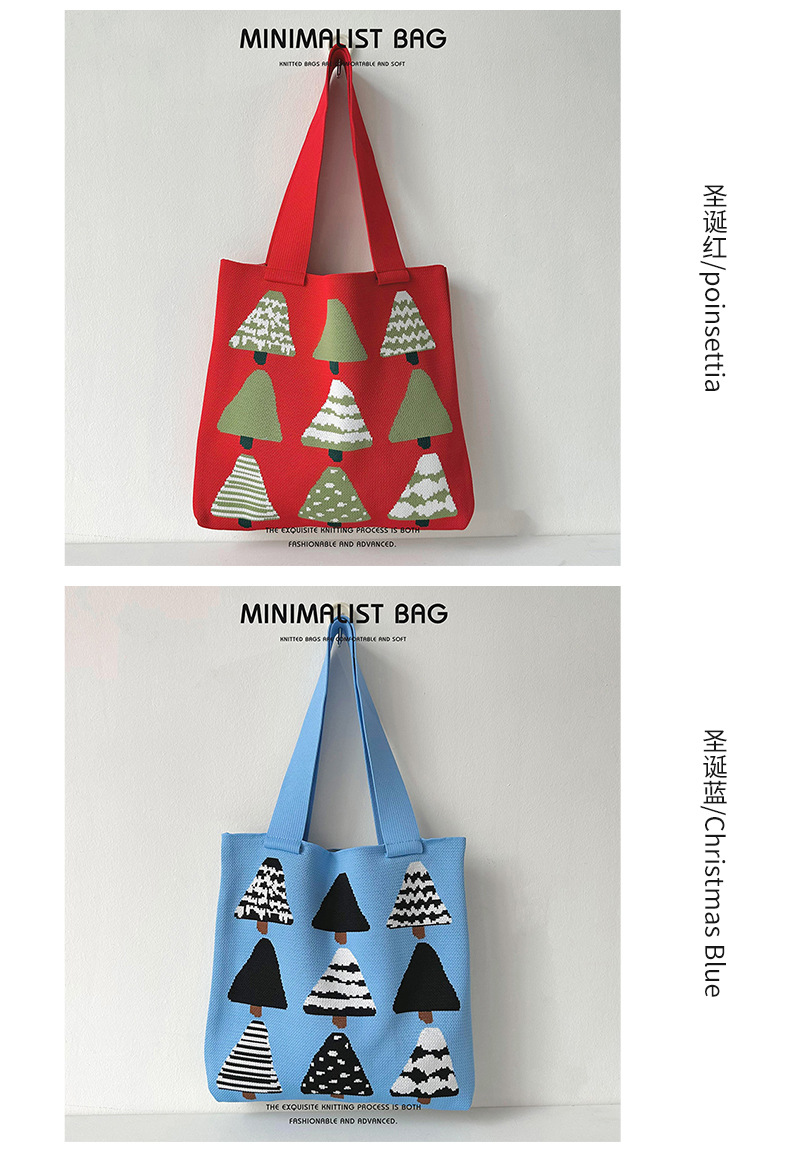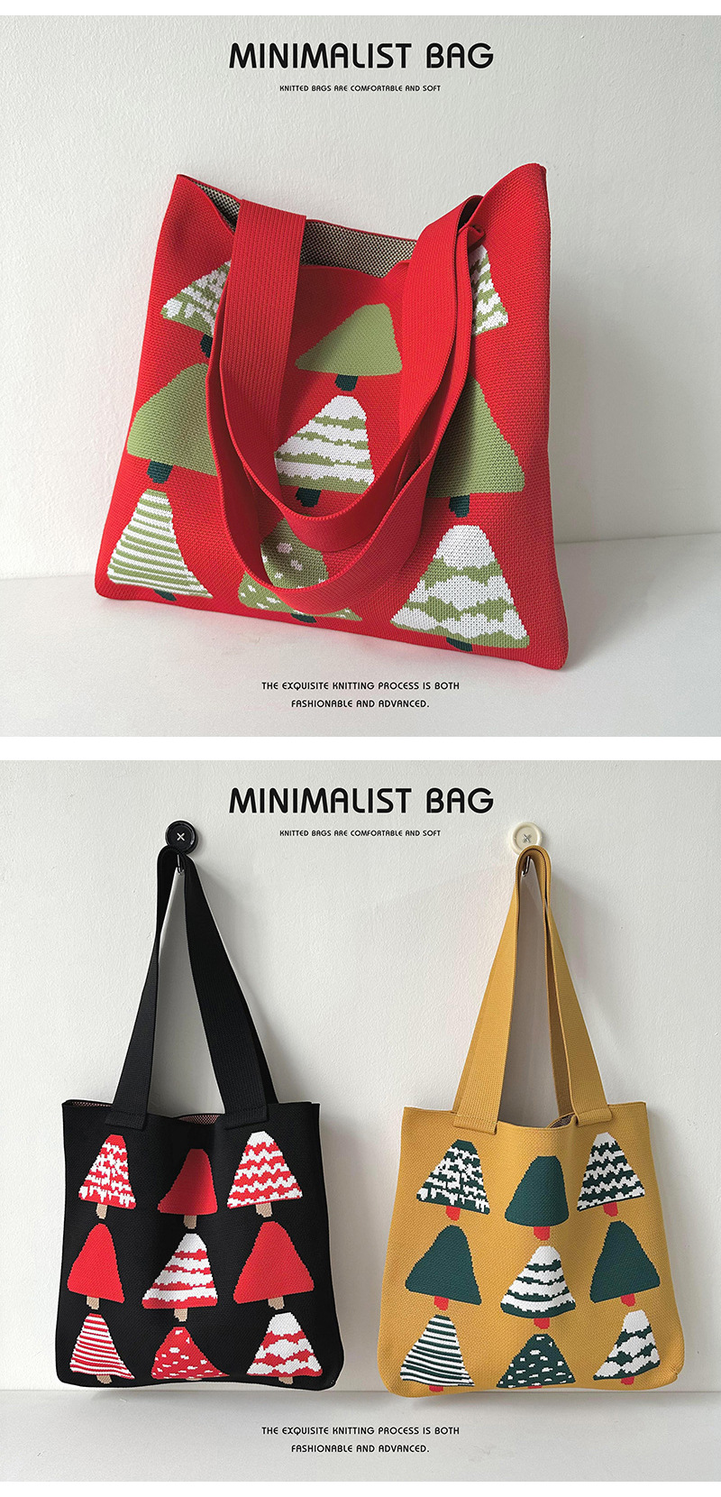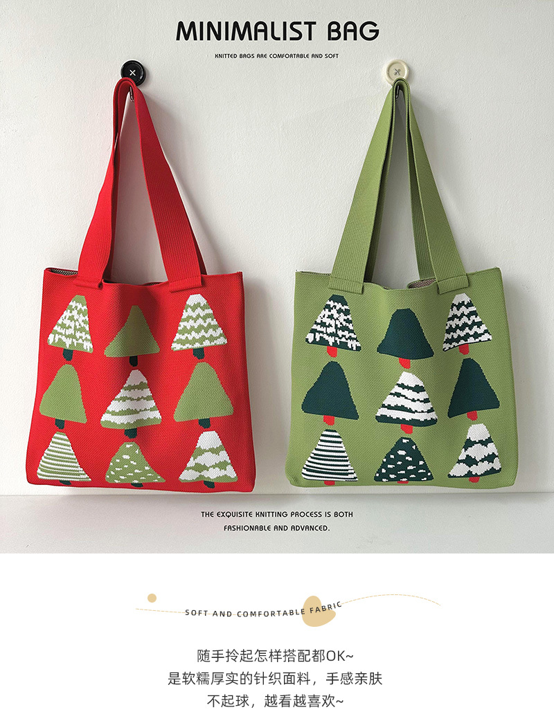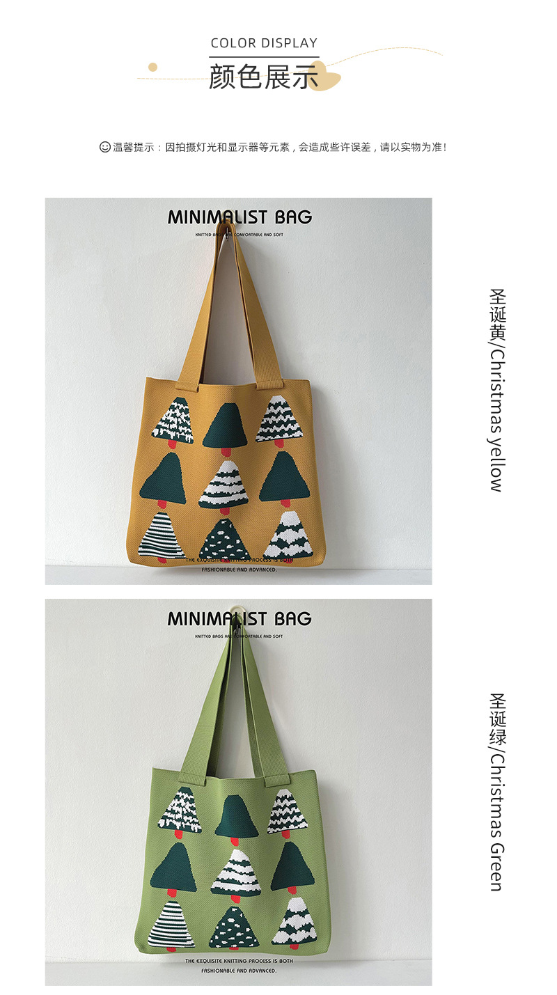Estilo coreano de dibujos animados creativo árbol de Navidad bolso de punto de las mujeres de moda versátil de gran capacidad estudiante bolsa de compras bolsa de hombro