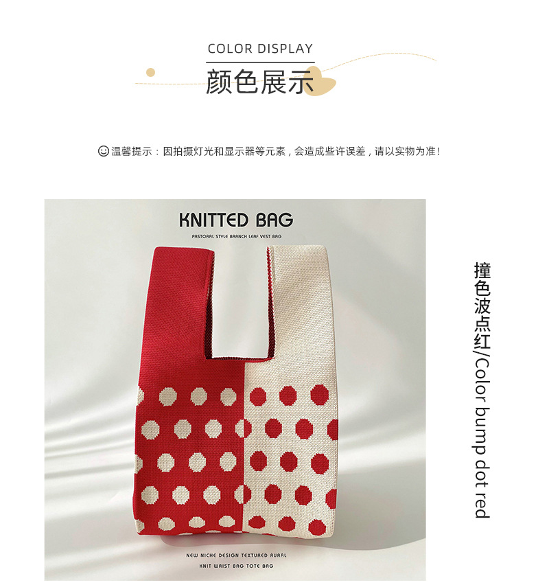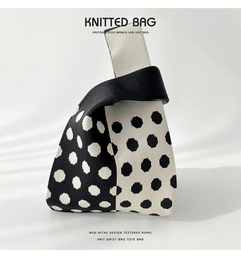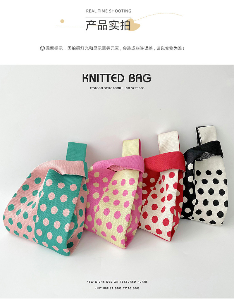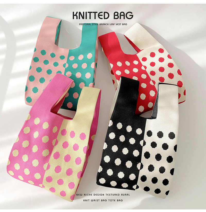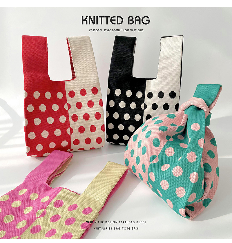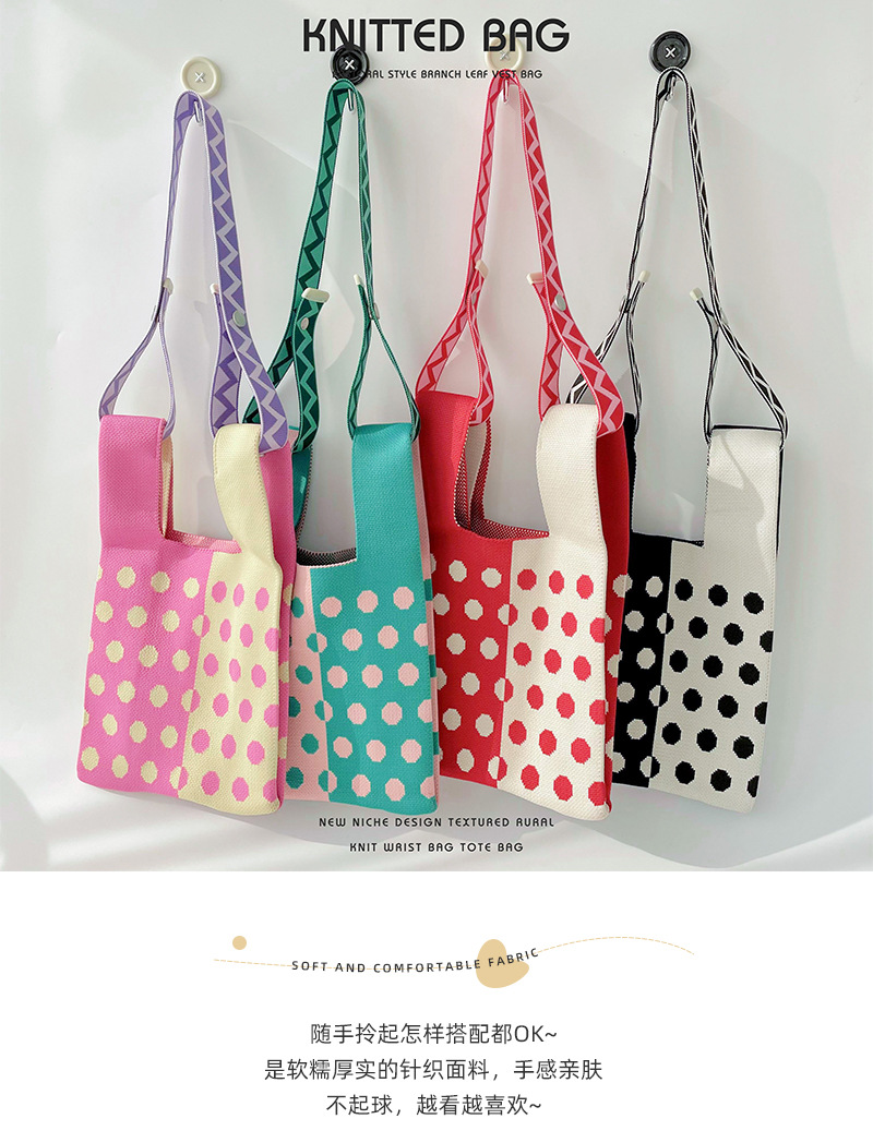 Diseño de nicho color matching Polka Dot bolso de hombro de punto estudiante versátil bolsa de muñeca de gran capacidad bolsa de compras