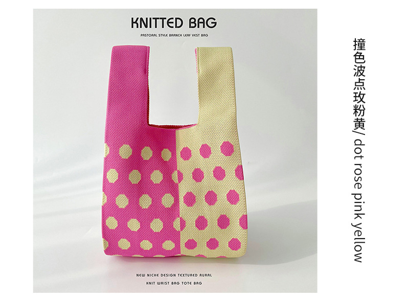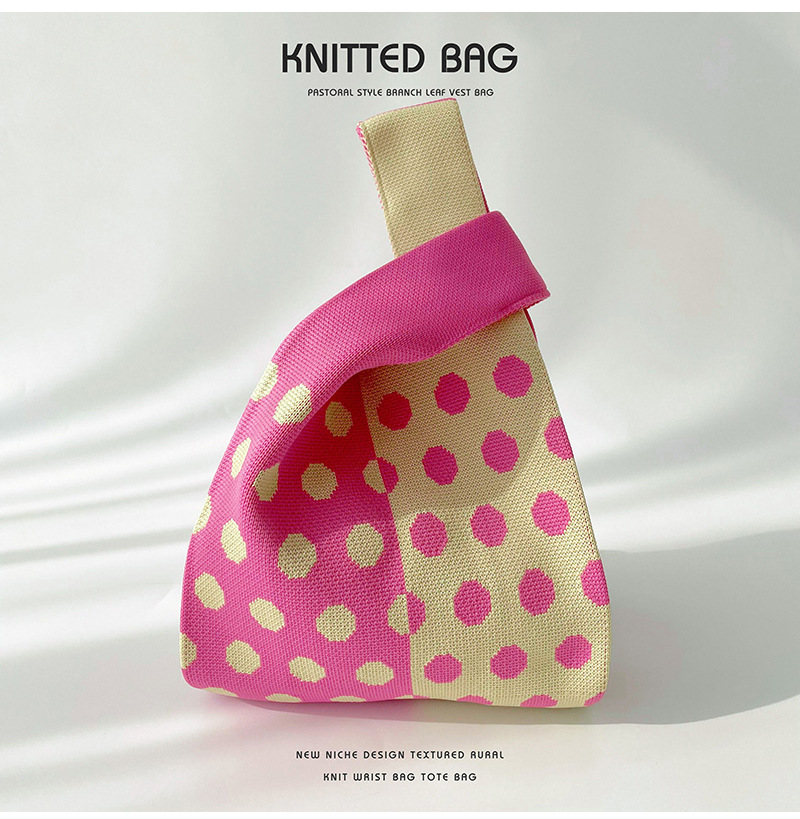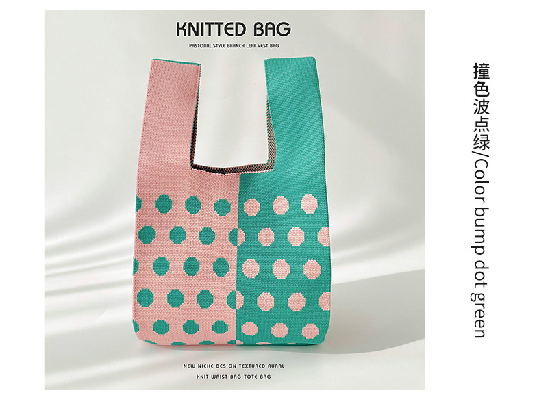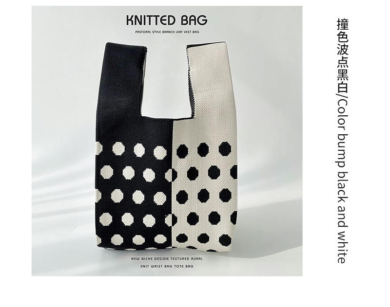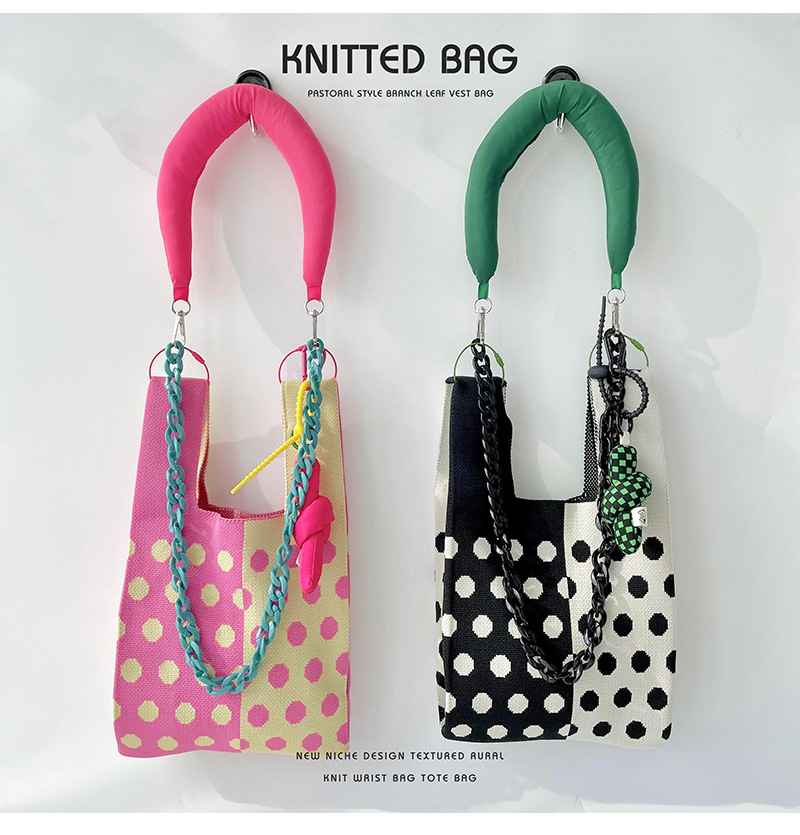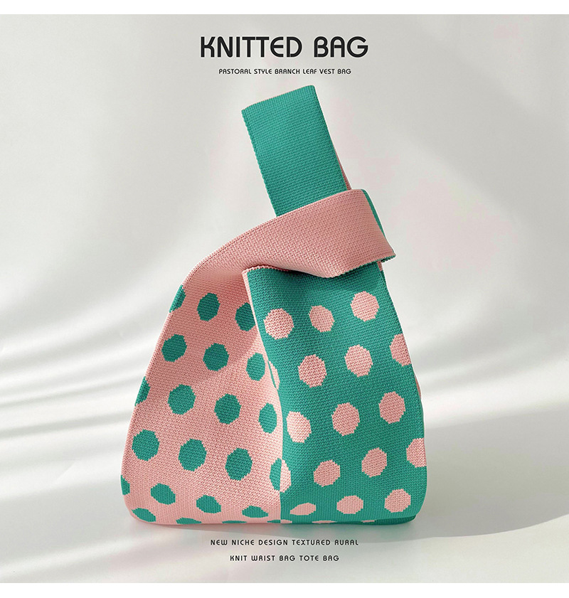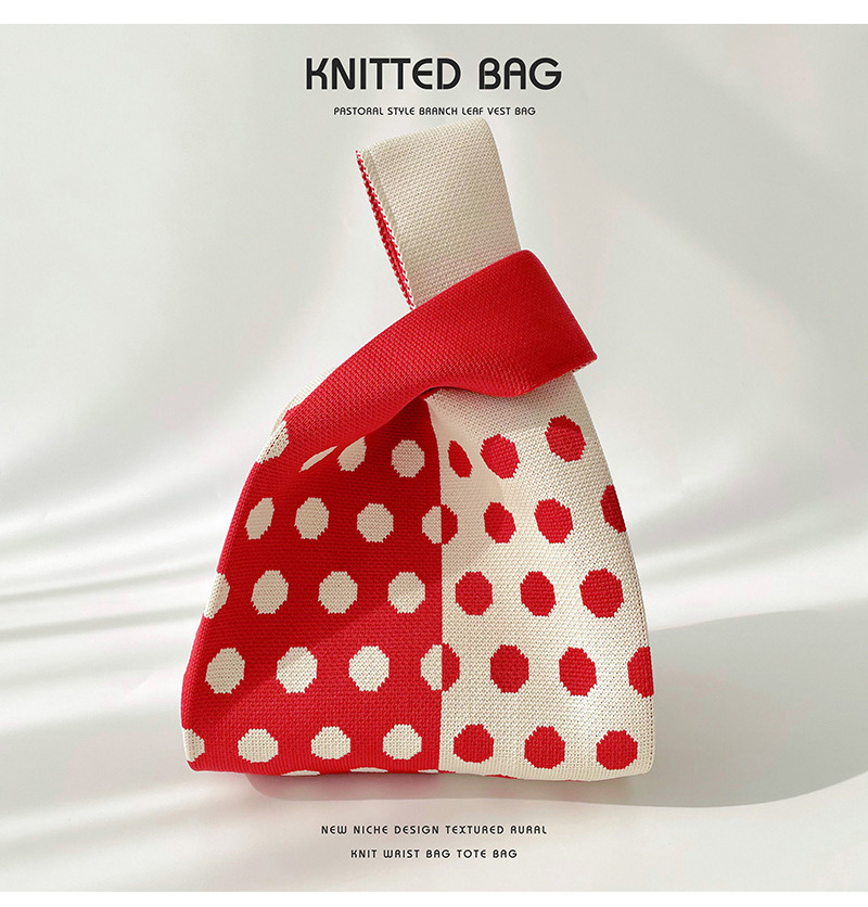 Diseño de nicho color matching Polka Dot bolso de hombro de punto estudiante versátil bolsa de muñeca de gran capacidad bolsa de compras