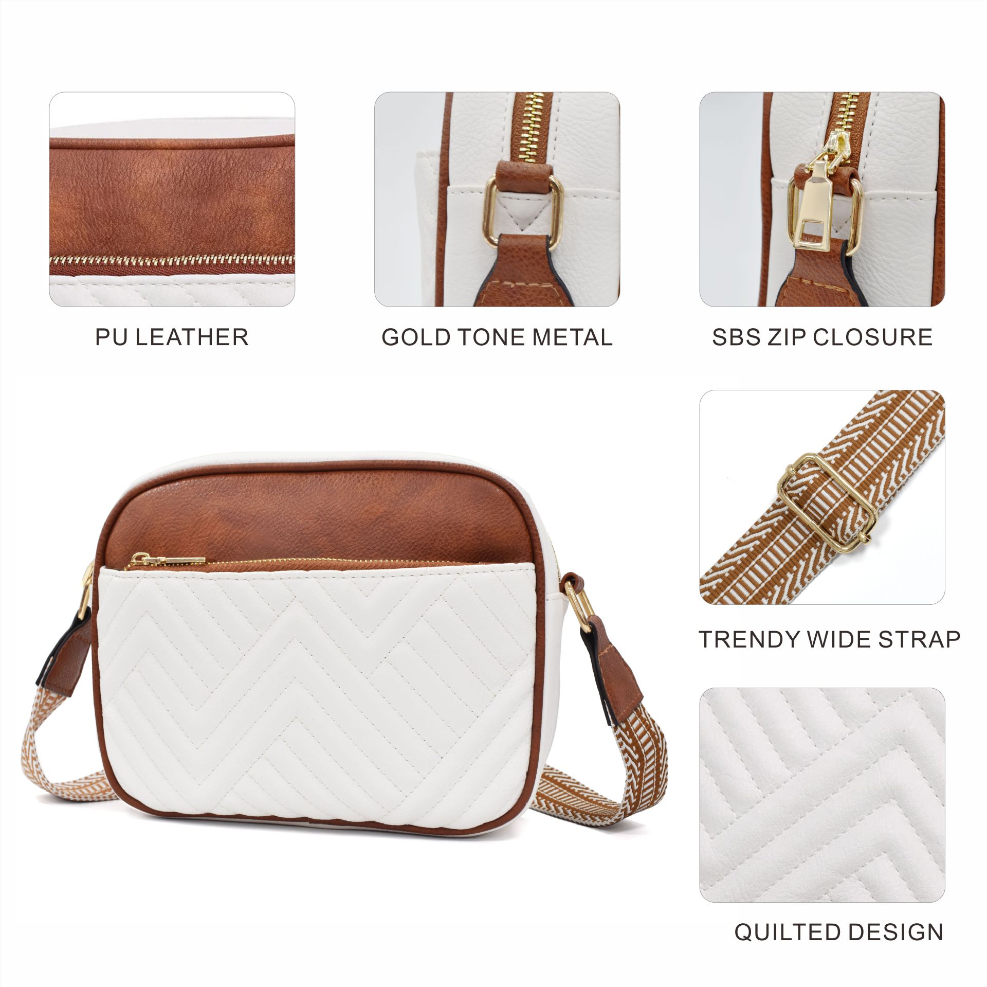 En stock Amazon Venta caliente acolchado bordado Plaid color a juego retro hombro bolsa cremallera hombro Correa mensajero bolsa cartera pequeña bolsa cuadrada