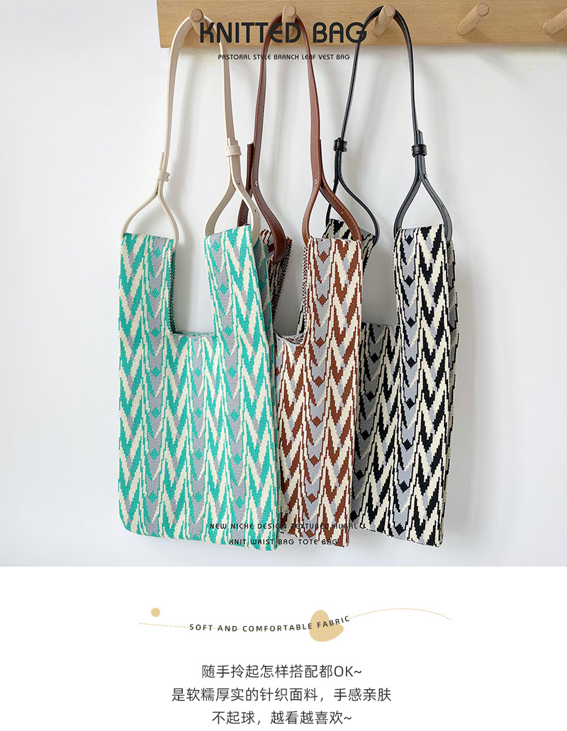 Bolsa de diseño de nicho de punto bolso de hombro bolso de mano simple de gama alta todo-fósforo de gran capacidad estudiante bolso de la muñeca