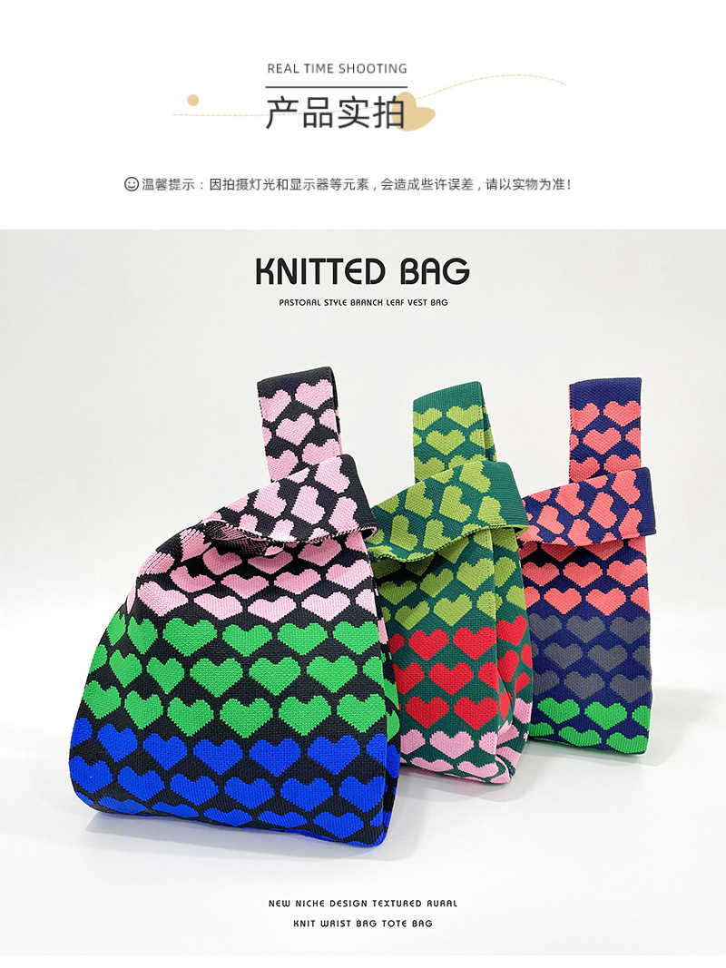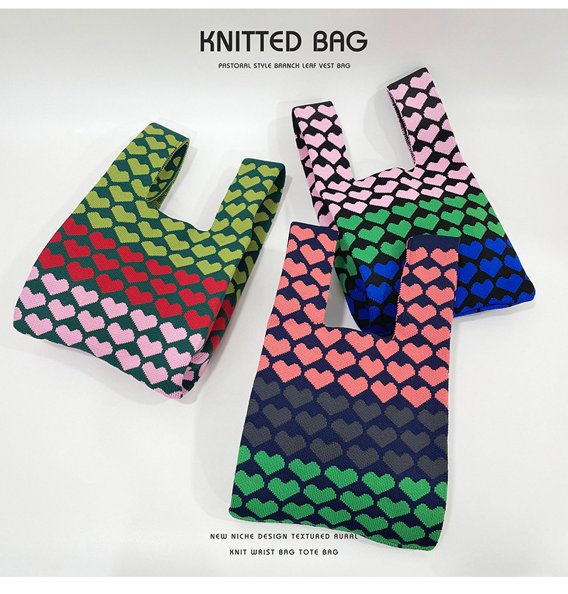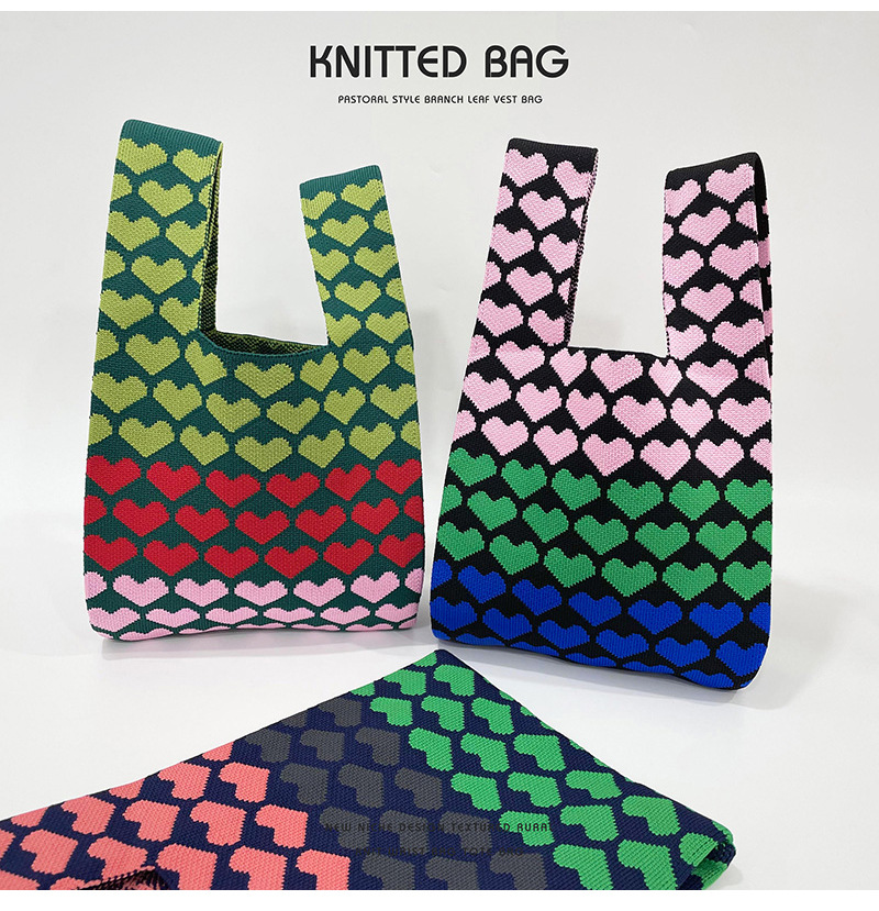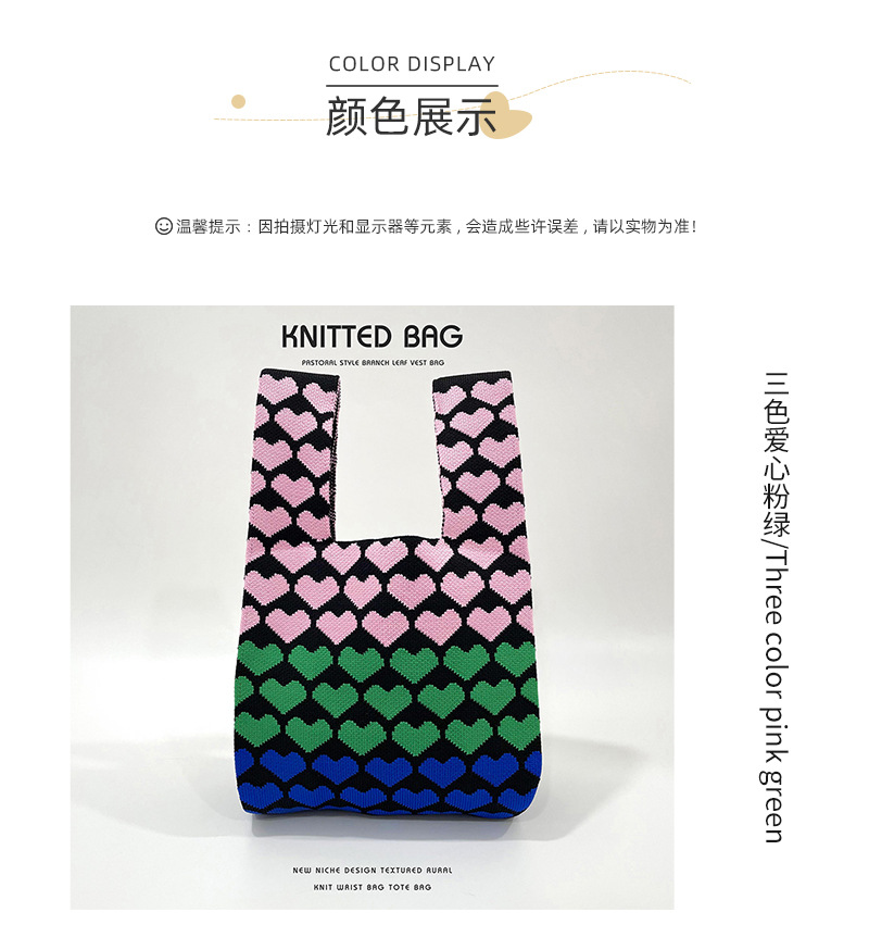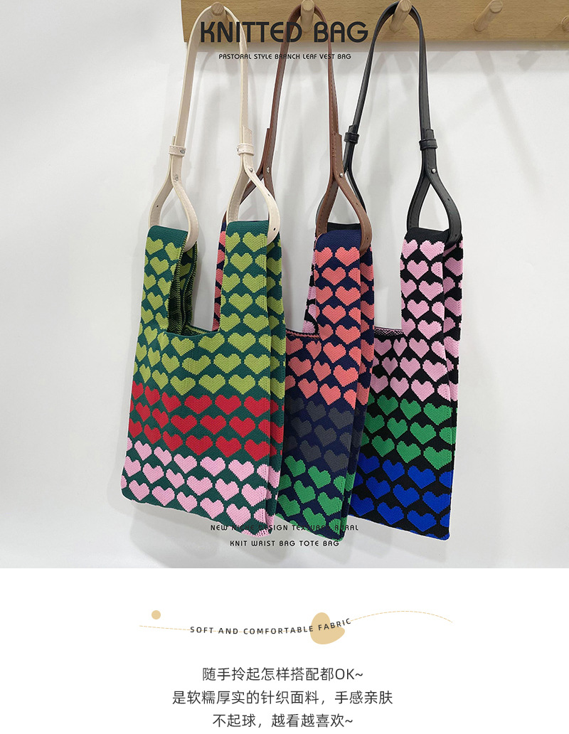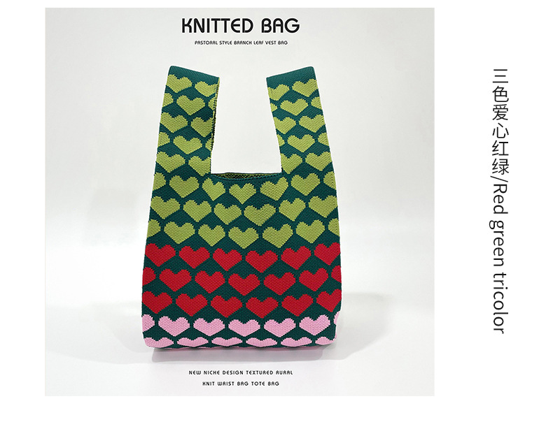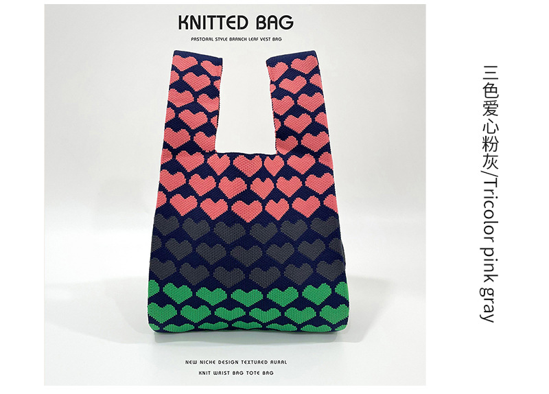 Diseño de nicho de tres colores Amor de punto hombro bolso de mano simple todo partido de gran capacidad bolso de mano al por mayor