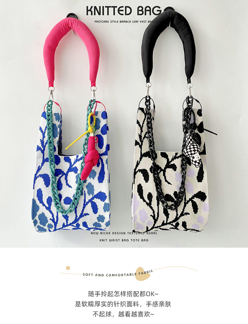 Primavera y verano estilo coreano todo fósforo pequeño bolso floral fresco personalidad todo partido bolso de hombro de punto gran capacidad fábrica al por mayor