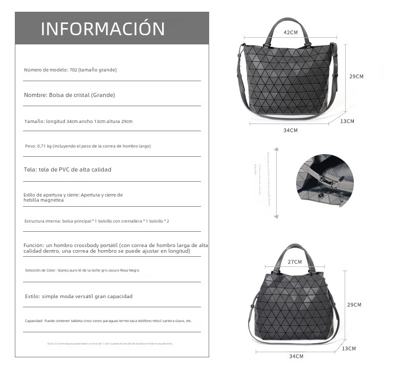 | Colores | Pequeño color té con leche,Pequeña gris,Trompeta blanca,Pequeña rosa,Pequeña negra,Té de leche grande,Gris grande,Rosa grande,Negro grande,Blanco grande |