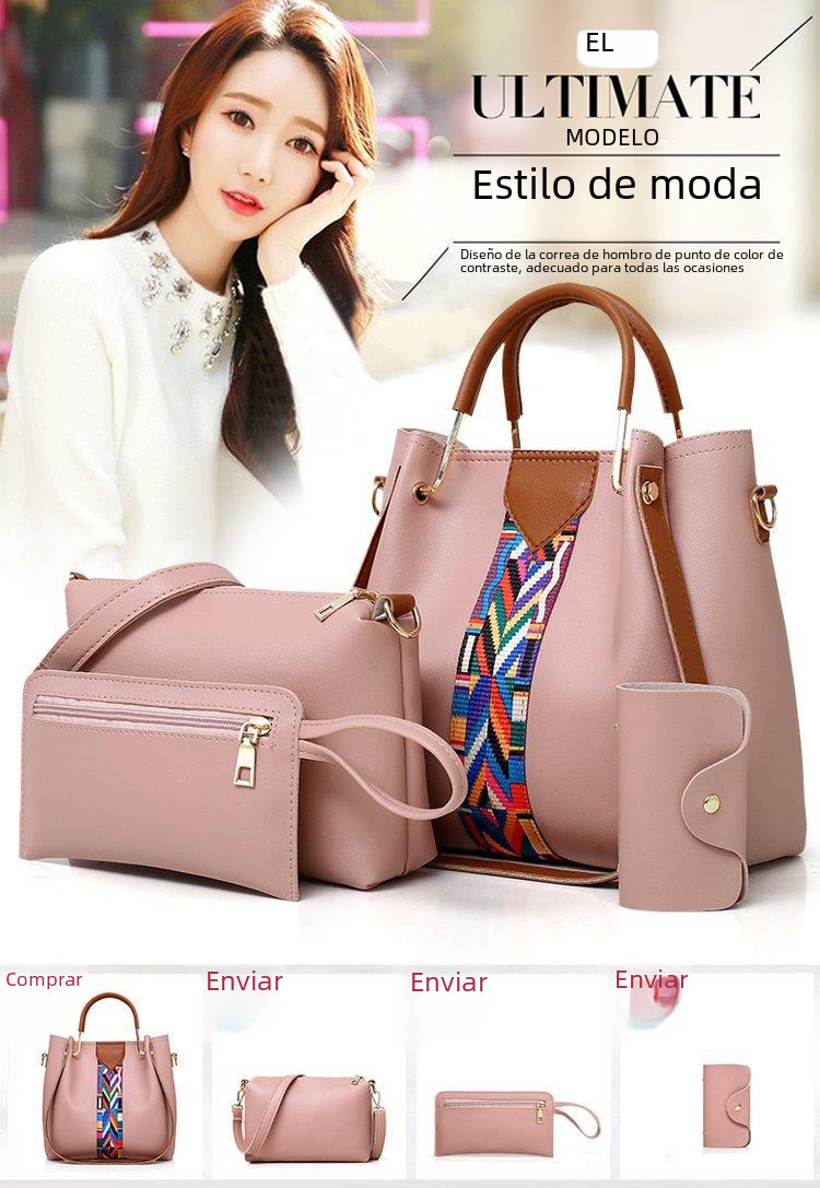 Bolso de mujer 2023 nuevo conjunto de cuatro piezas de moda europea y americana bolso de madre e hijo bolso de mensajero portátil bolso de cubo fábrica al por mayor