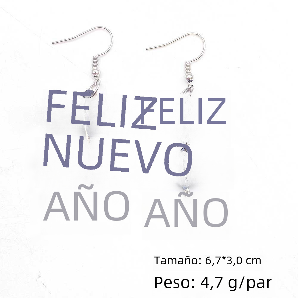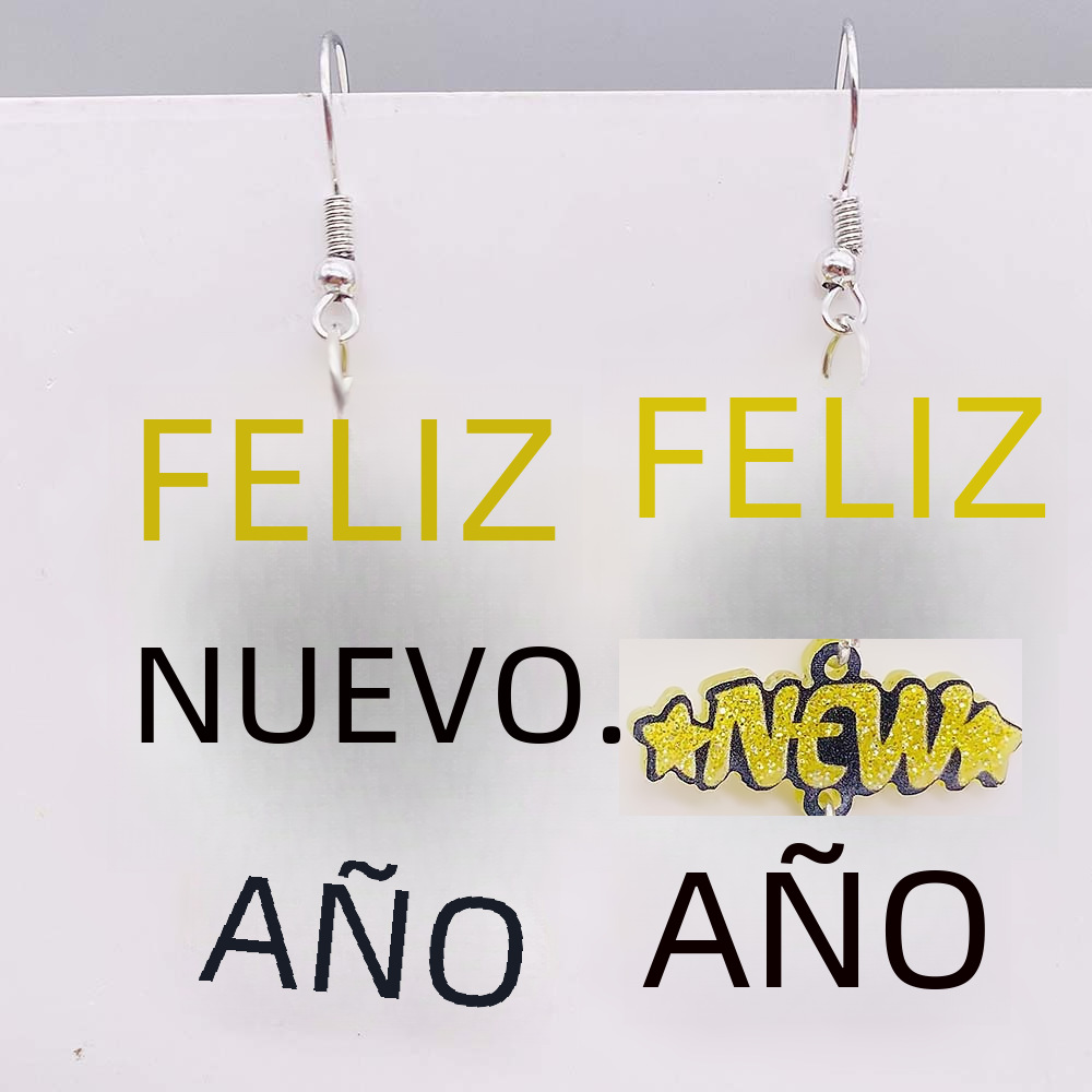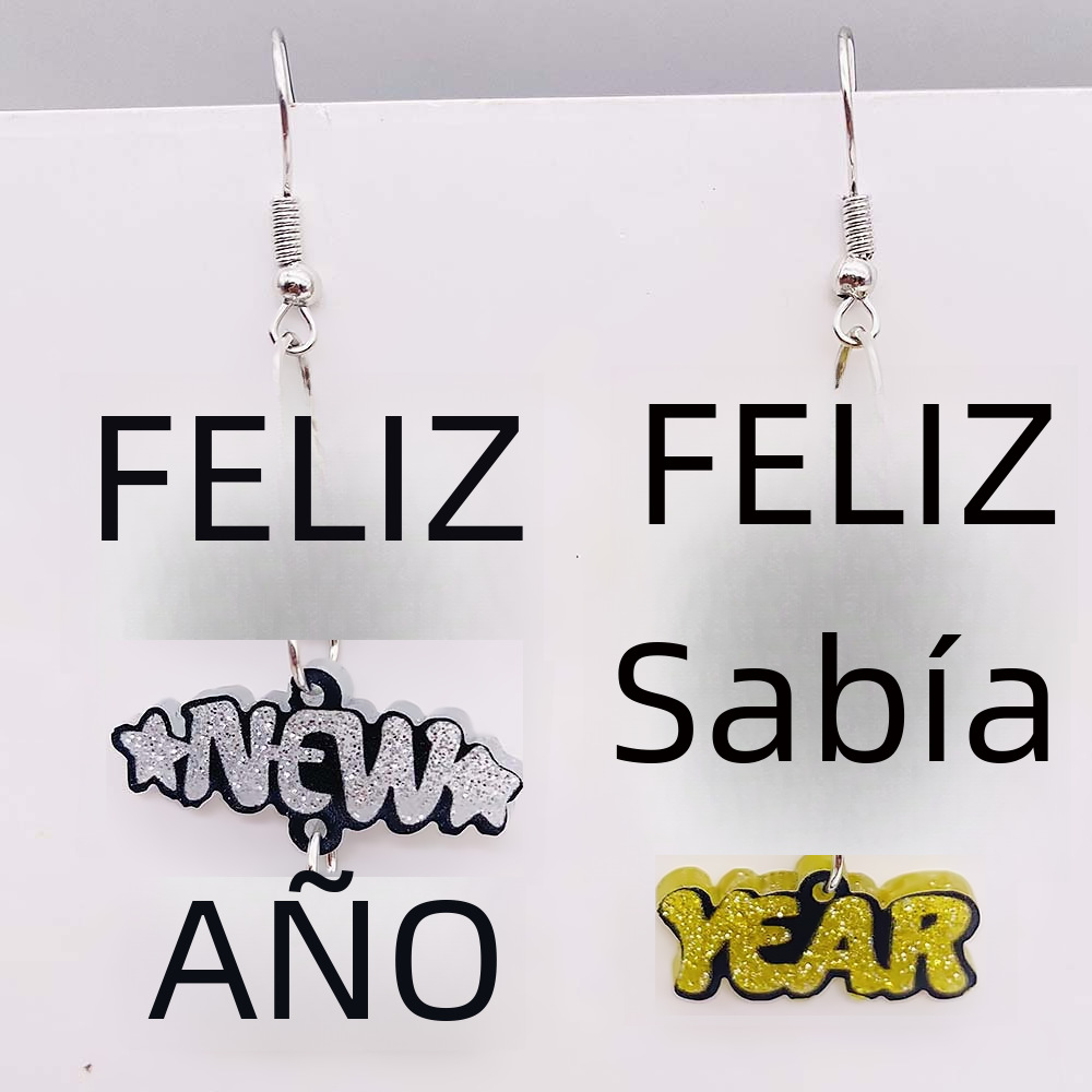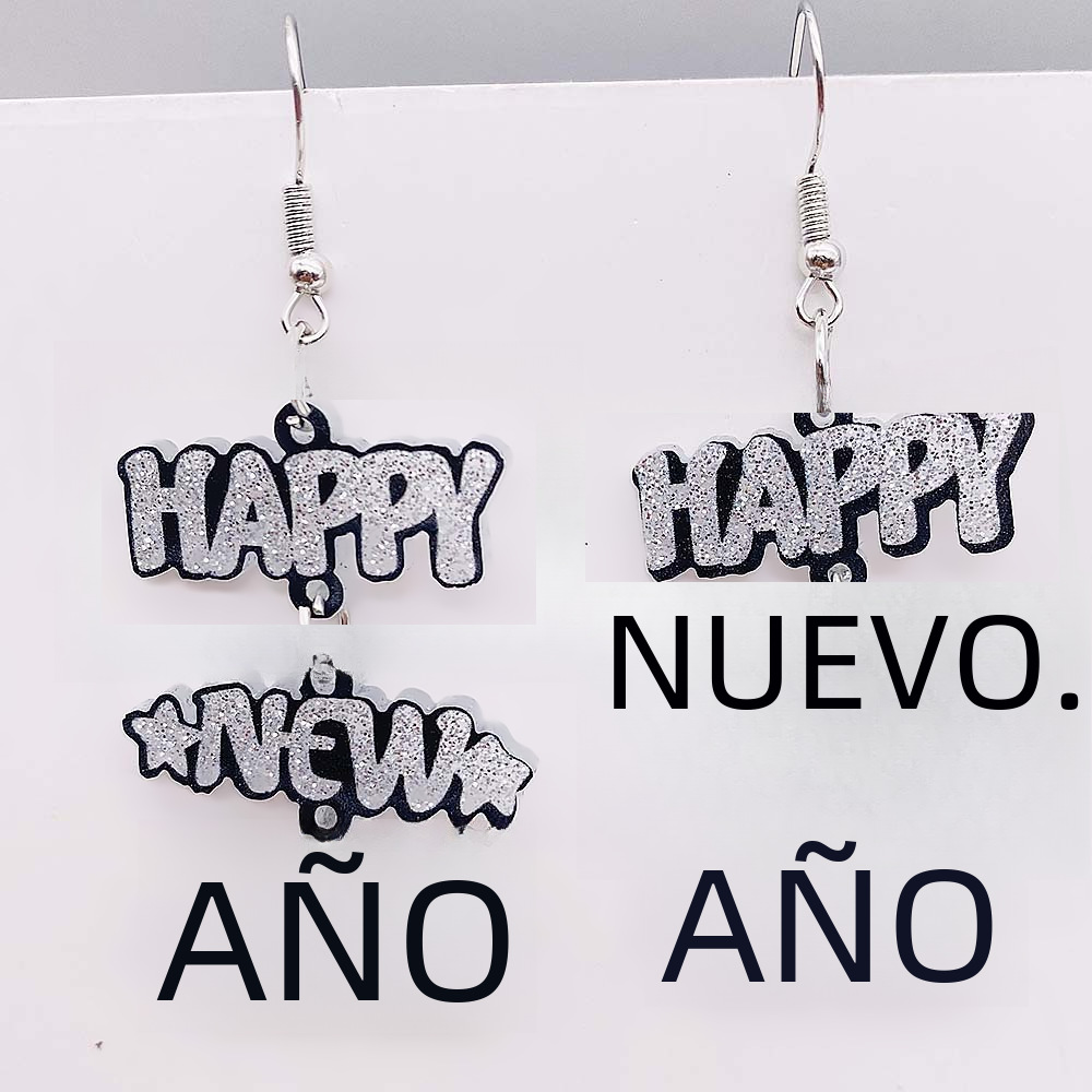 Año nuevo pendientes de acrílico Feliz Año Nuevo letras inglesas pendientes de costura joyería transfronteriza europea y americana del oído