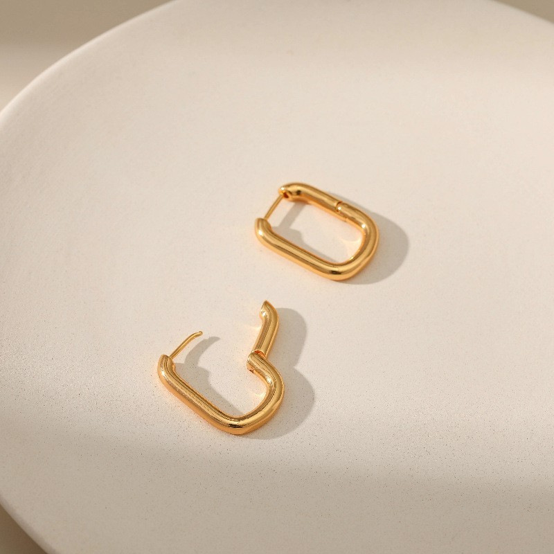 Pendientes de oro y plata de textura geométrica de las mujeres de 18K De La Venta caliente transfronteriza de cobre pendientes de luz gruesos grandes de moda de personalidad europea y americana