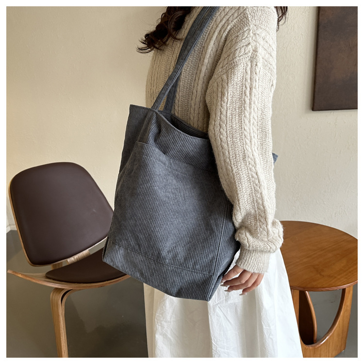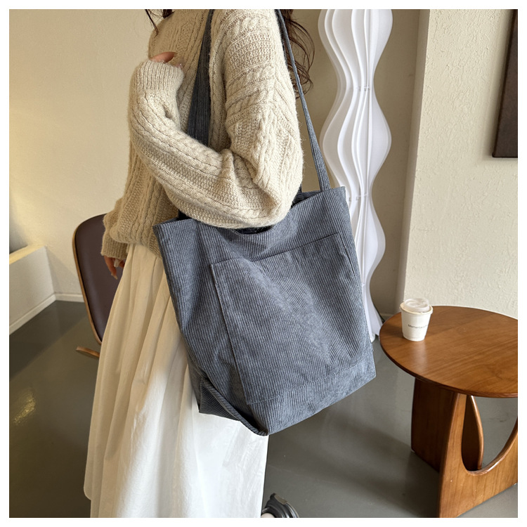 Pana de color sólido bolso de hombro de gran capacidad bolso de las mujeres artístico perezoso estilo coreano bolsa de lona bolso casual moda