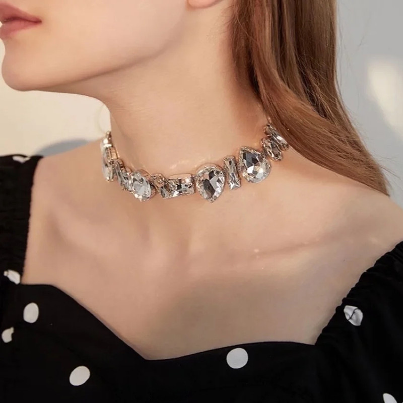 Collar de cadena de diamantes de imitación de alto grado de lujo ligero nicho INS collar grueso de metal de estilo frío Cadena de clavícula personalizada verano