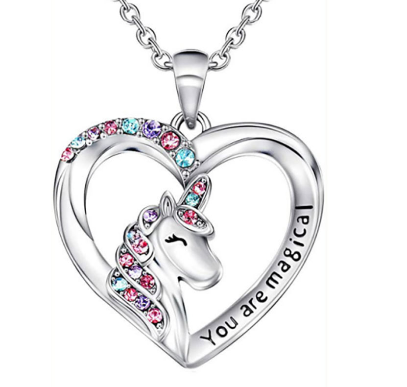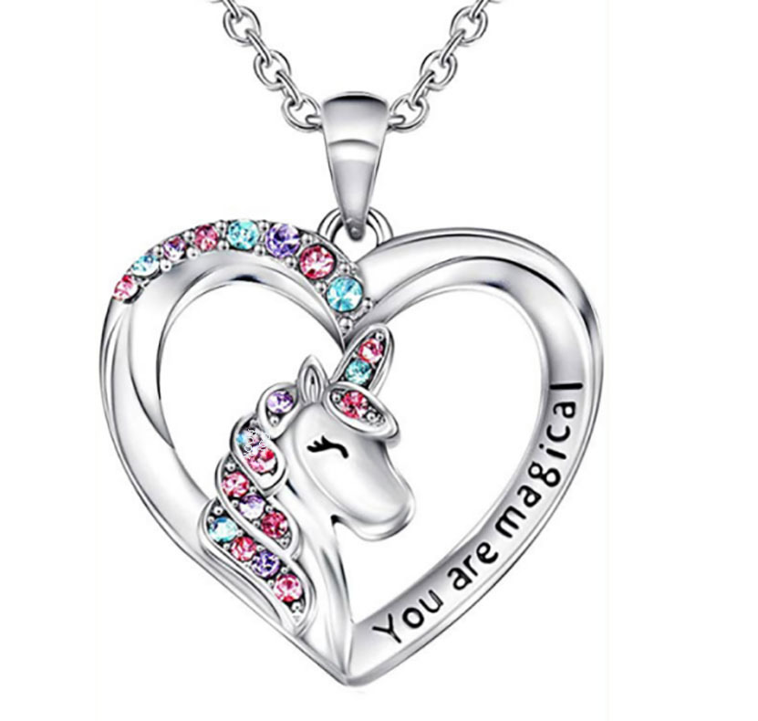 Qibi Nueva joyería transfronteriza unicornio Tianma collar colorido en forma de corazón pony colgante de fábrica al por mayor