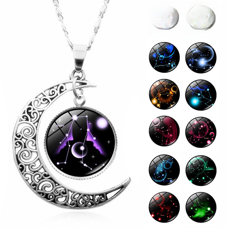 12 constelación collar luna creciente AliExpress deseo doce constelación de tiempo collar Luna joya