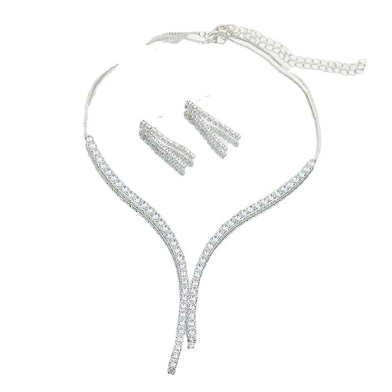 Europeo y americano largo borla ZIRCON collar pendientes traje elegante Internet celebridad todo partido moda nupcial boda joyería moda