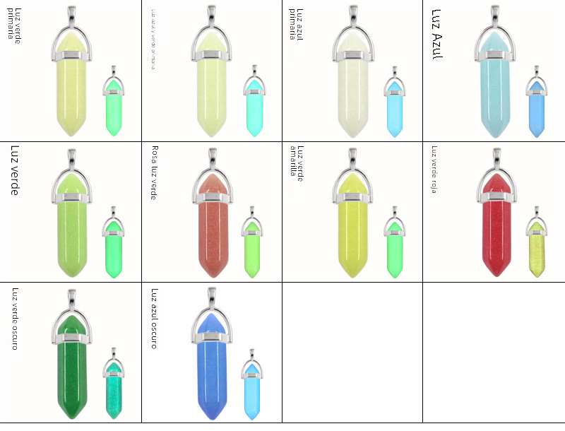 Color brillante piedra luminosa columna hexagonal colgante europeo y americano joyería luminosa fluorita doble punta columna bala collar al por mayor