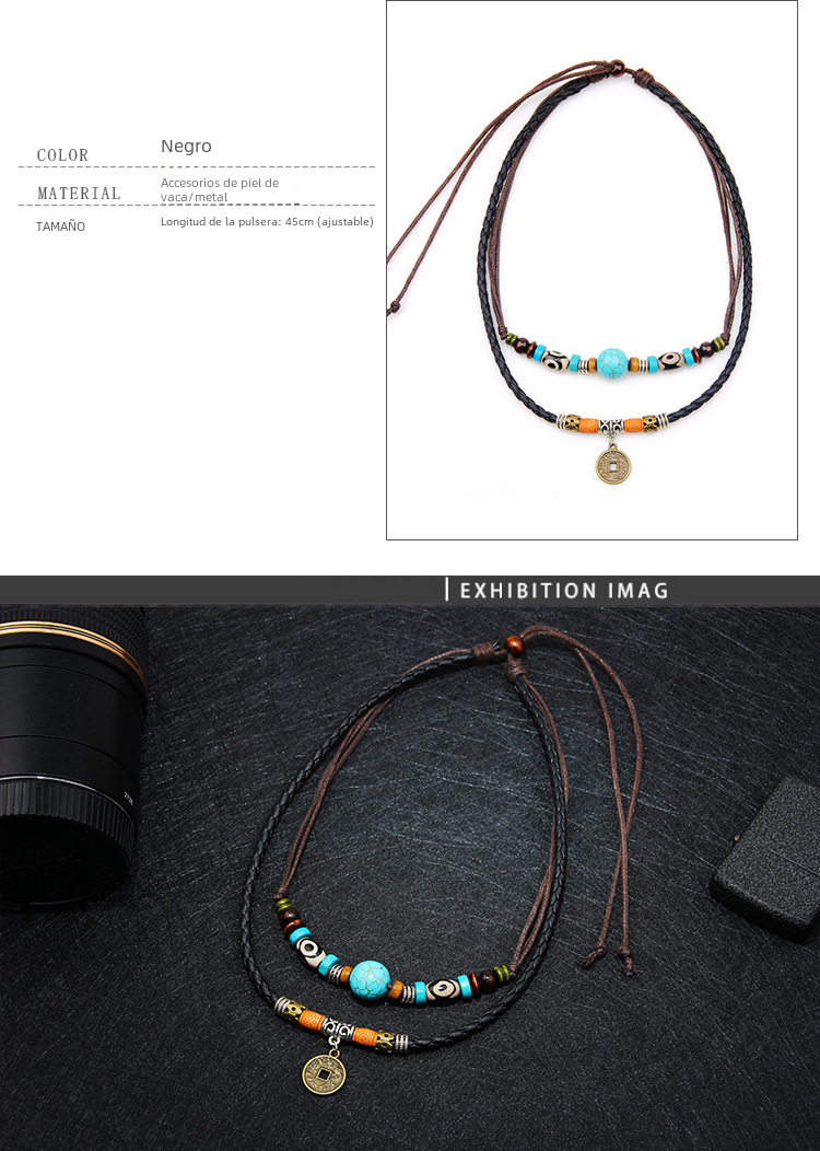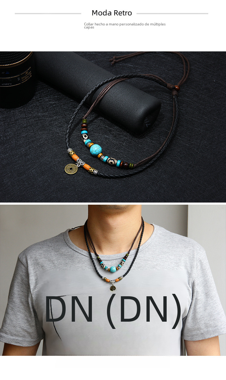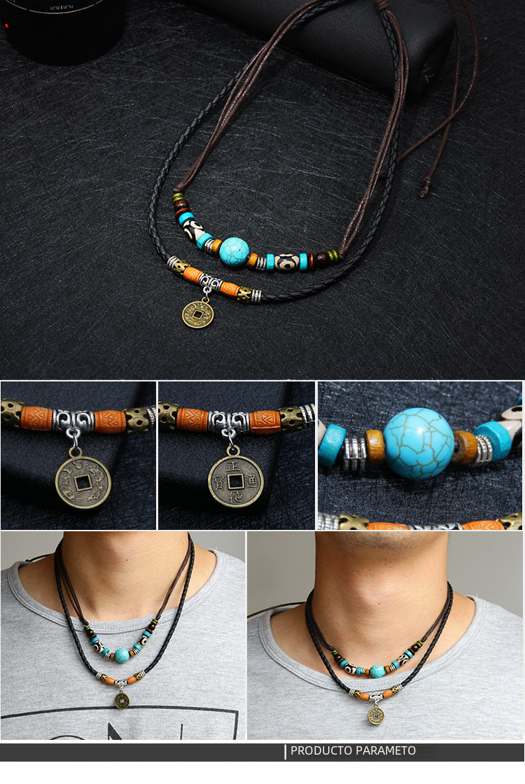 Directo de fábrica al por mayor de Europa y América turquesa personalizado retro moneda colgante collar Simple collar de Los Hombres de la joyería