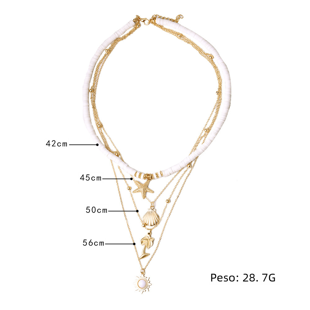 2021 joyería de moda europea y americana de cerámica suave estrella de mar colgante collar vintage sol collar de múltiples capas al por mayor