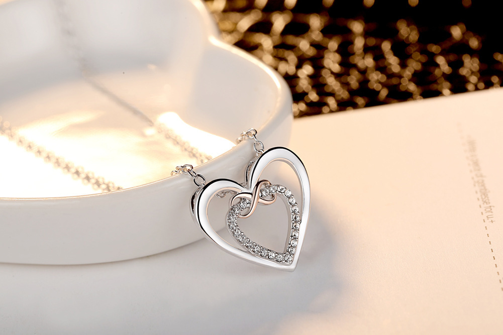 Corea del Sur transfronterizo nuevo collar de amor de dos colores de la moda simple de las mujeres collar en forma de corazón platino Cadena de clavícula de oro rosa