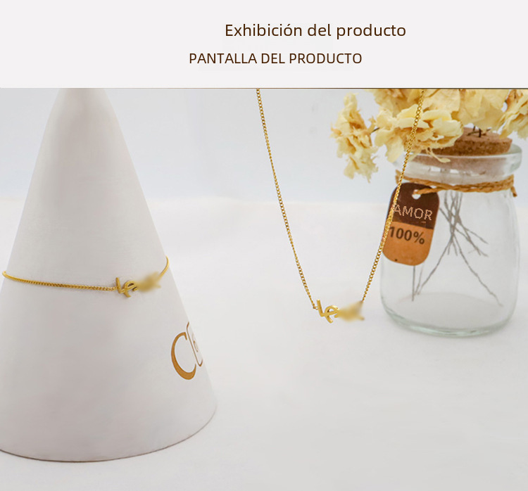 Inglés carta colgante collar titanio acero no-desvanecimiento plateado 18K oro real Luz de lujo Cadena de clavícula joyería fábrica al por mayor