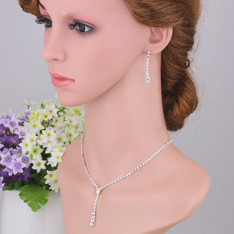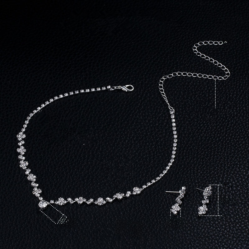 Suministro europeo y americano popular electrochapado grueso plata joyería nupcial collar 2 piezas vestido de boda accesorios regalo collar