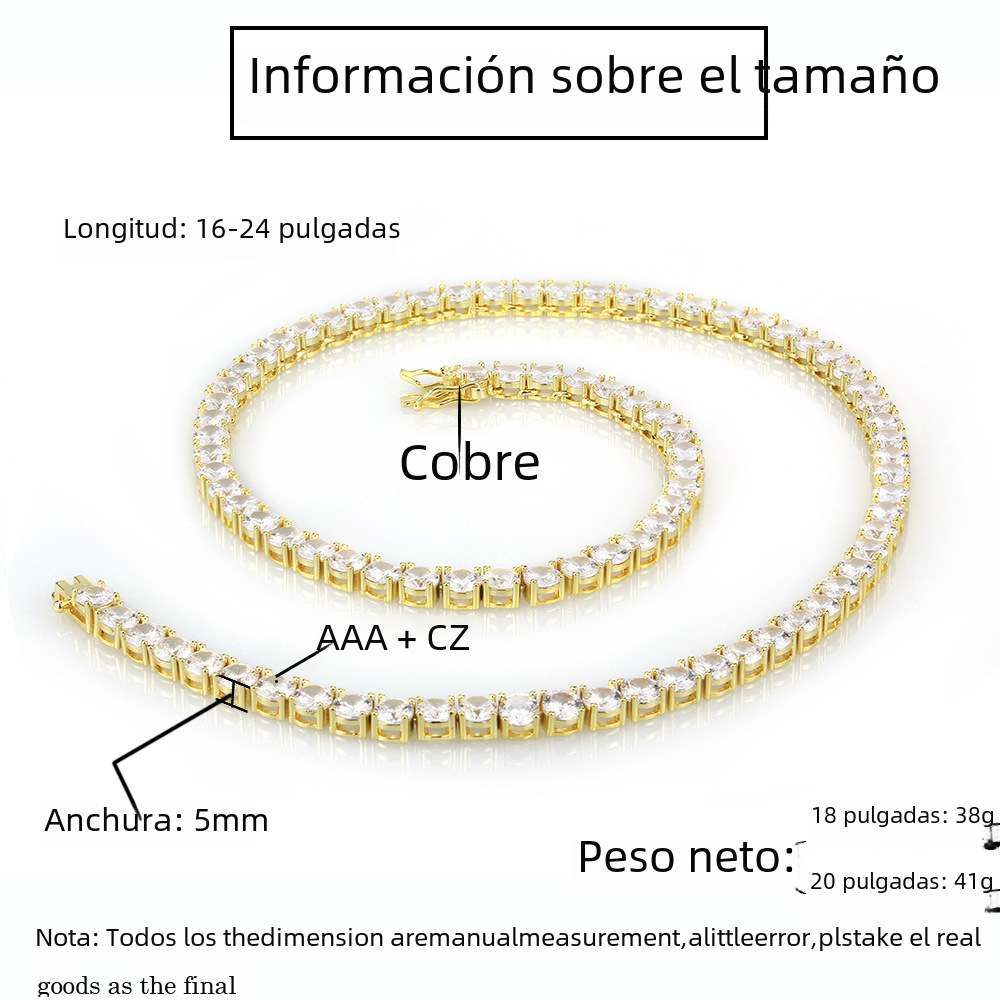 Europeo y americano transfronterizo popular circón tenis collar joyería femenina hip hop hombres Venta caliente accesorios nicho collar al por mayor