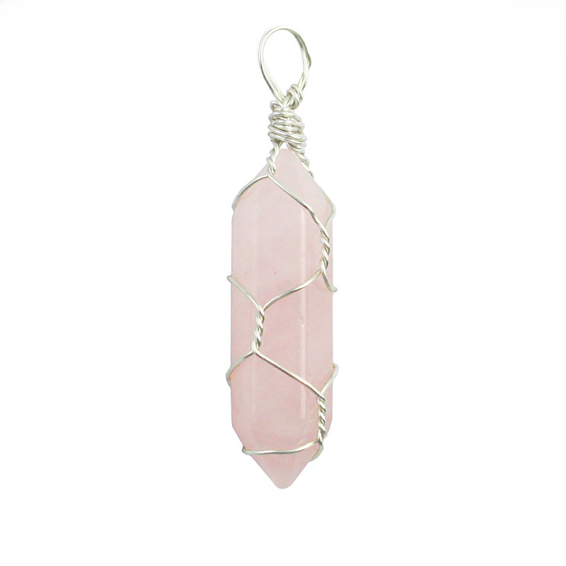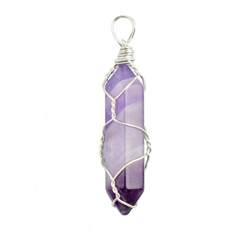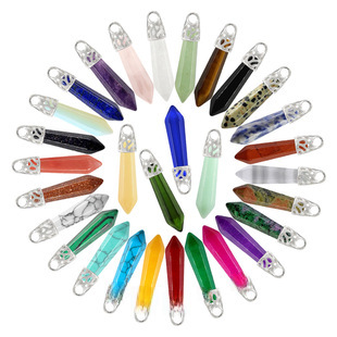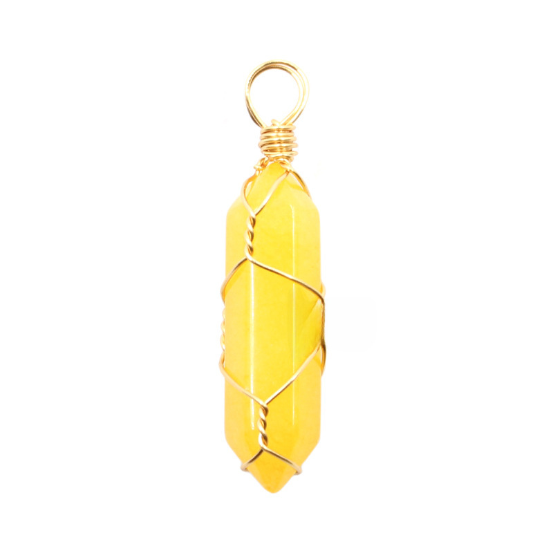 Venta caliente transfronteriza bobina de cristal hexagonal columna colgante de piedra natural collar de cristal bobinado europeo y americano Comercio exterior joyería al por mayor