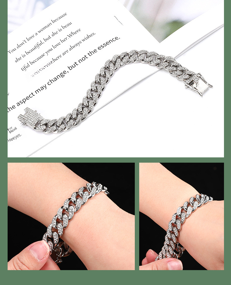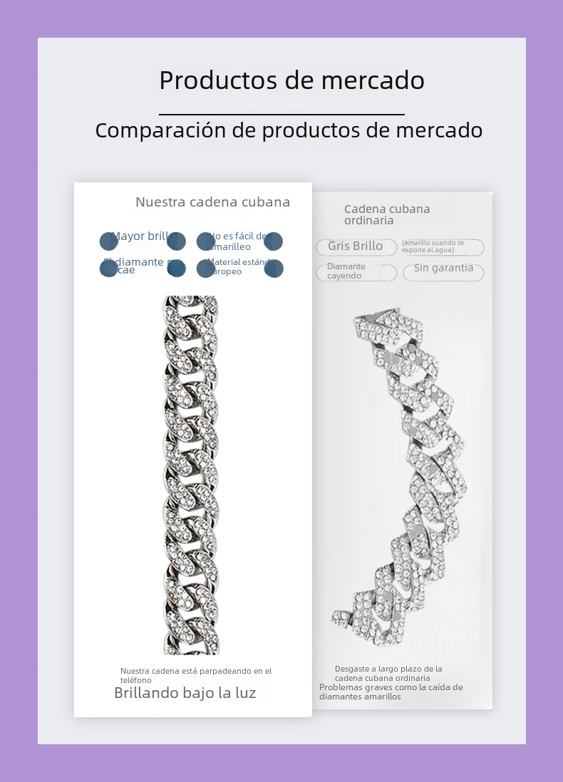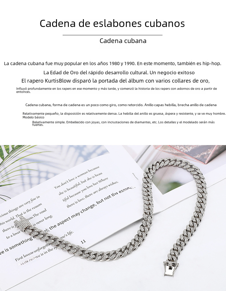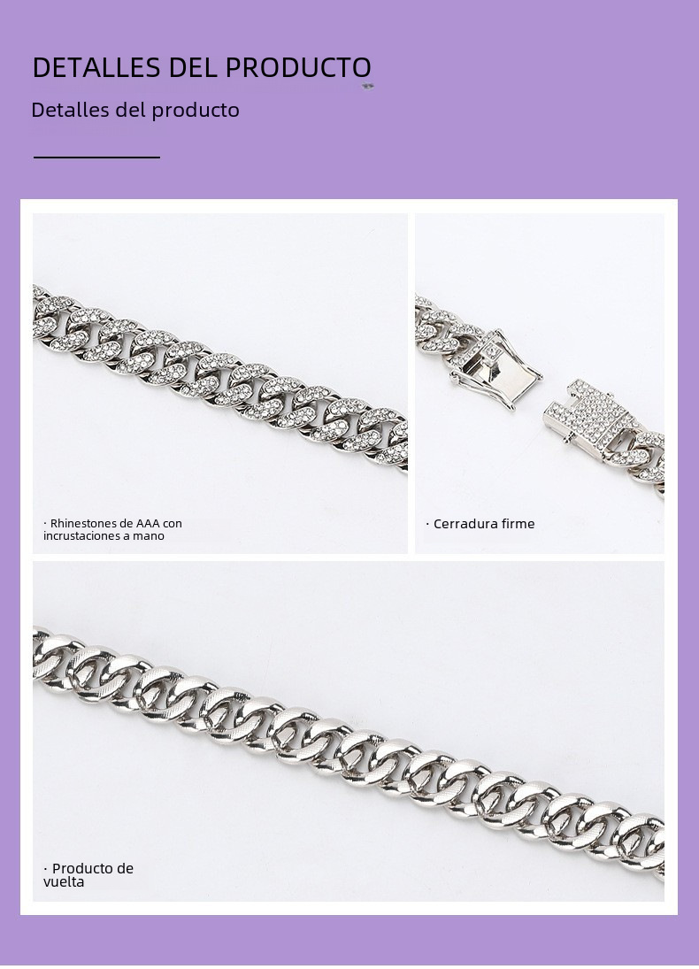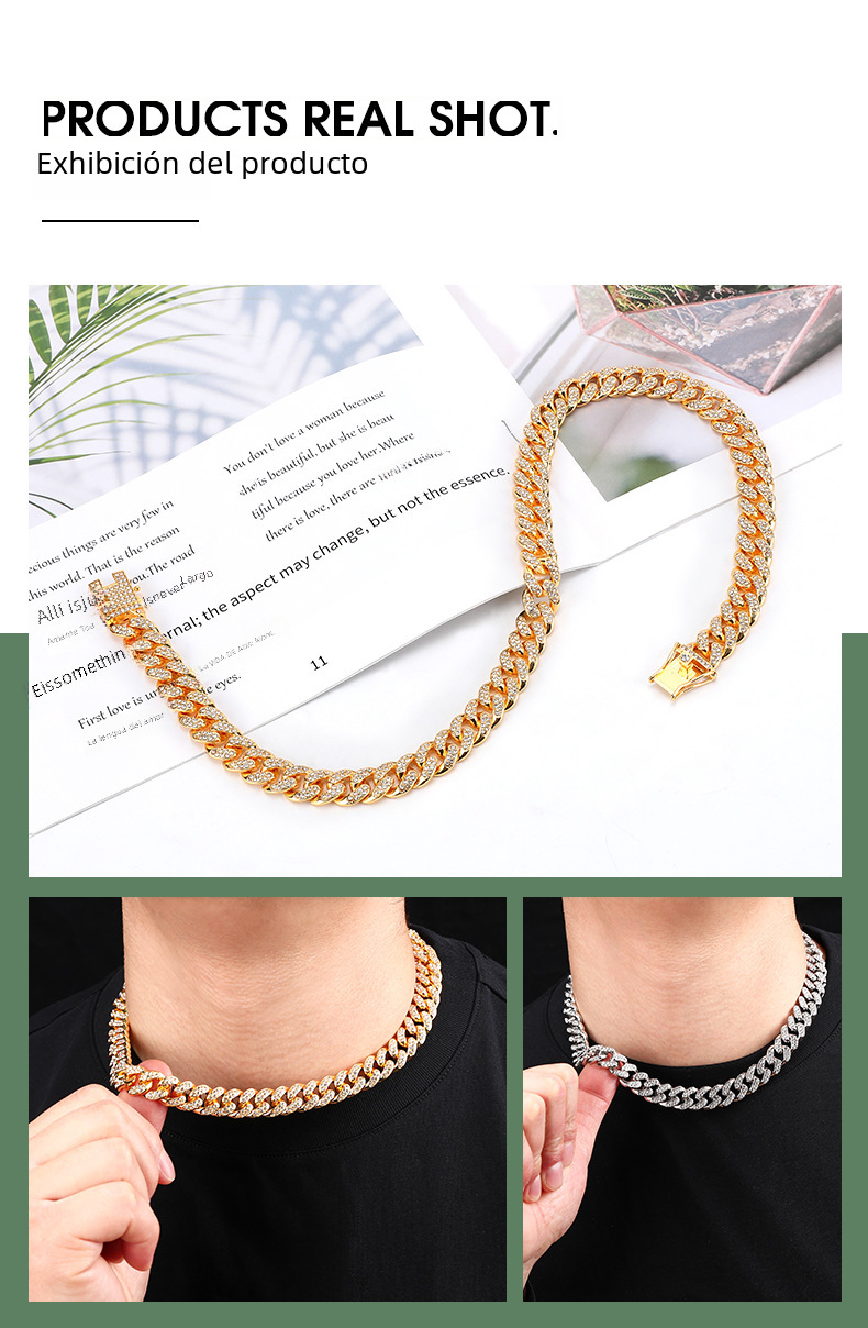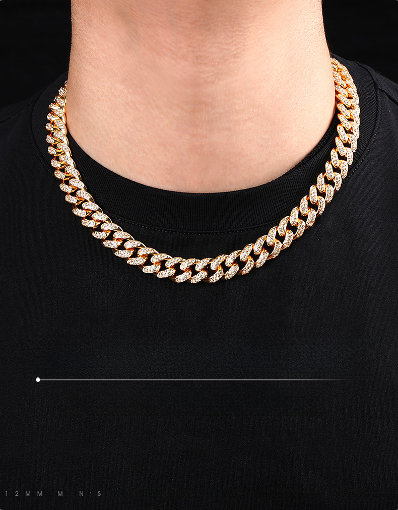 Línea de aleación europea y americana cadena cubana pulsera de diamantes 12mm diamante completo hombres y mujeres hip hop estilo chapado en oro collar transfronterizo