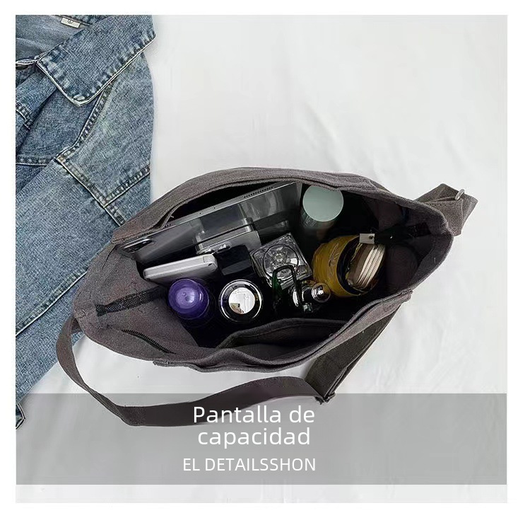 Bolsa de lona de gran capacidad bolsa de tela ins femenina bolsa de hombro de clase de estudiante universitario estilo japonés artístico simple bolsa de mensajero de estilo coreano