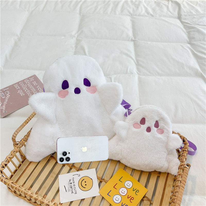 Creativo lindo divertido pequeño fantasma bandolera ins chica mochila super popular de dibujos animados estudiante de peluche mochila