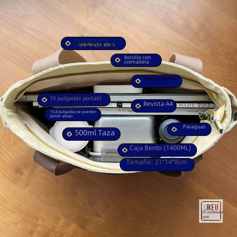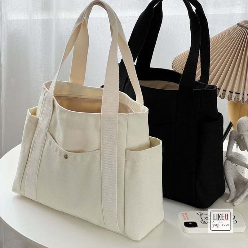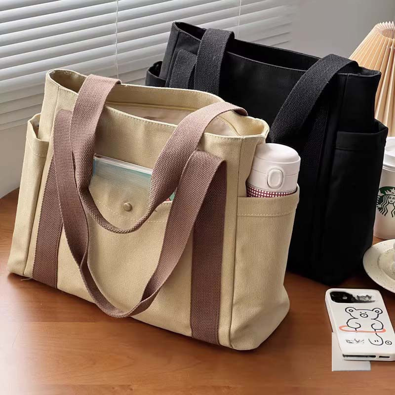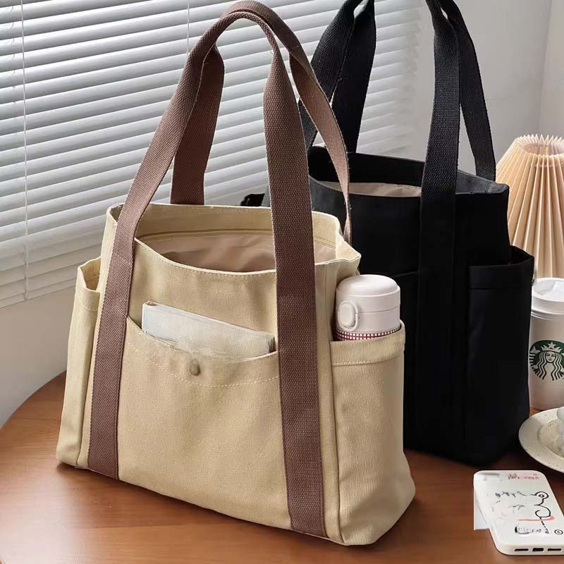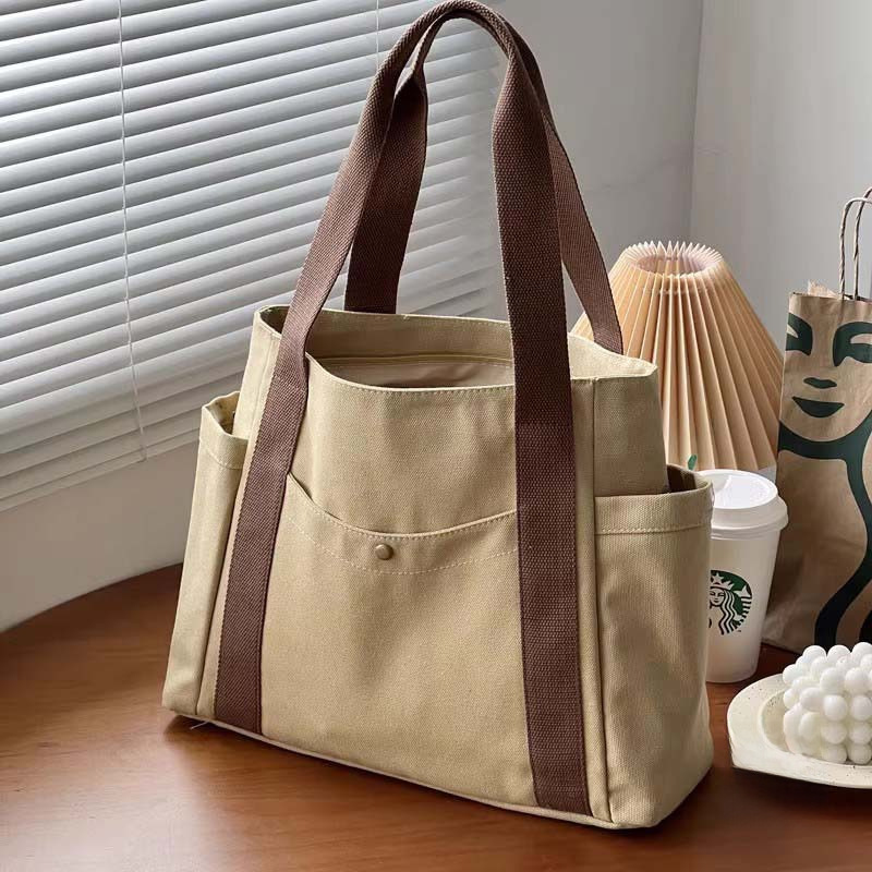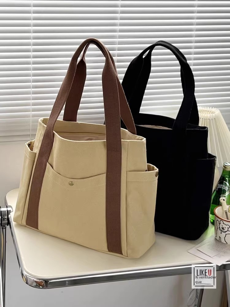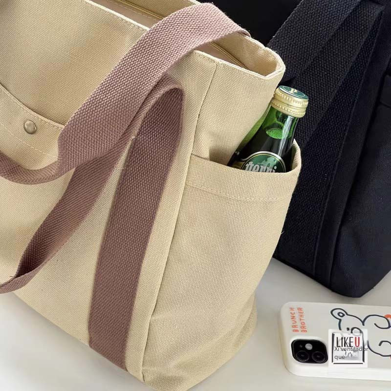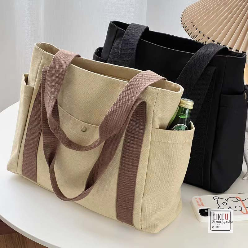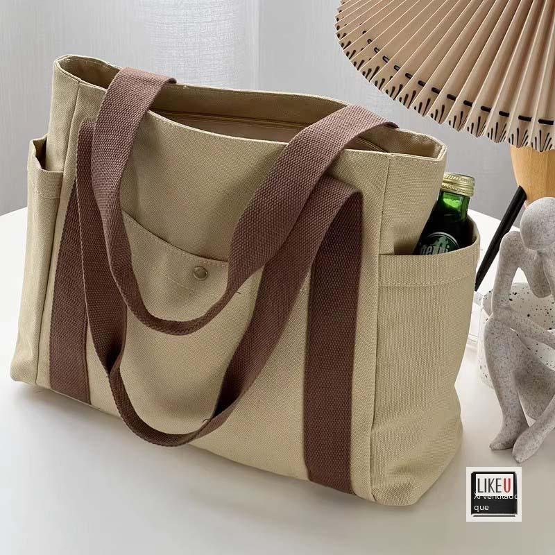 Bolsa de lona bolso de las mujeres bolso de hombro estudiante universitario bolso de viaje de gran capacidad bolsa de maquillaje multi-Bolsillo