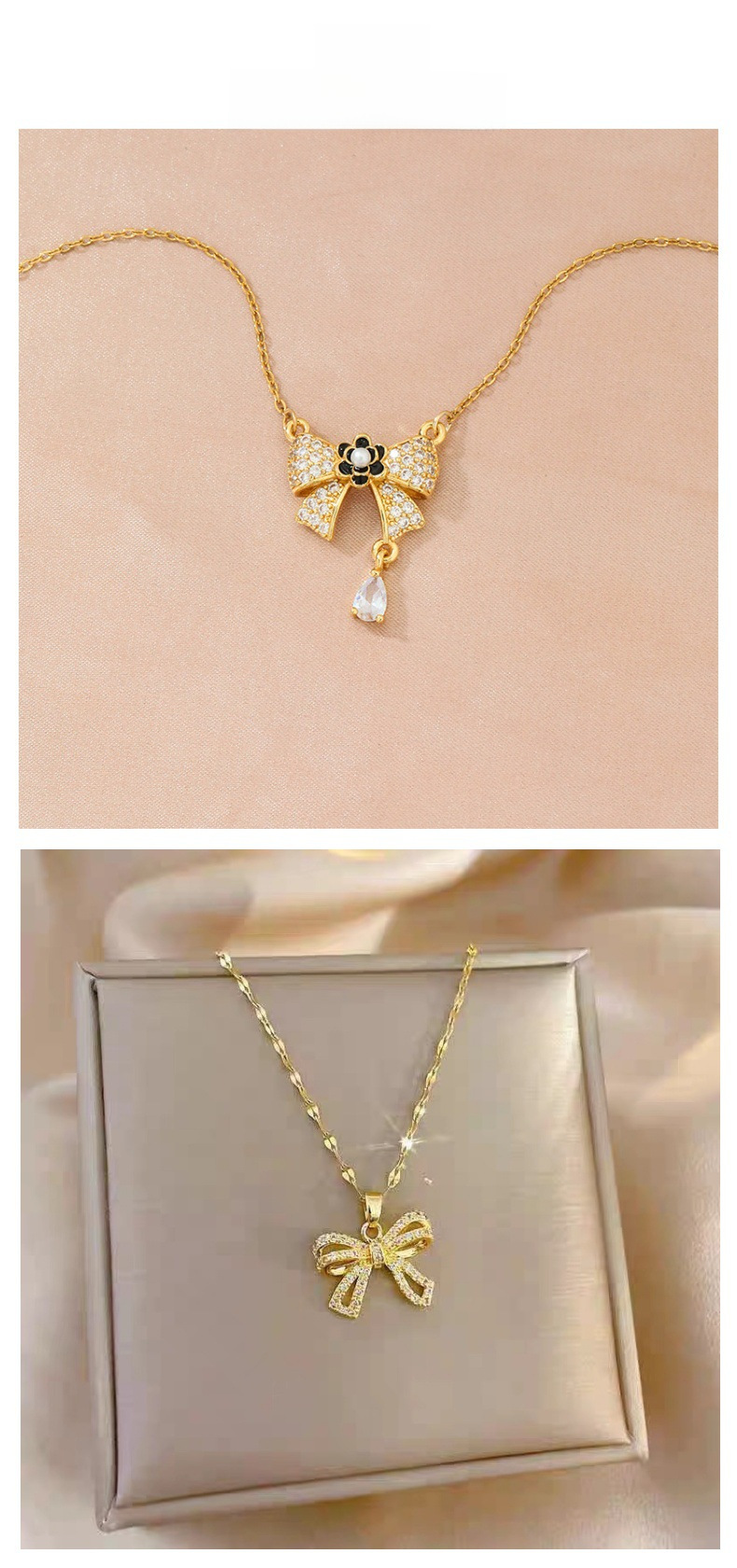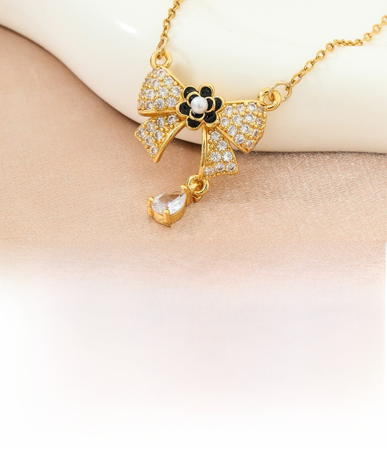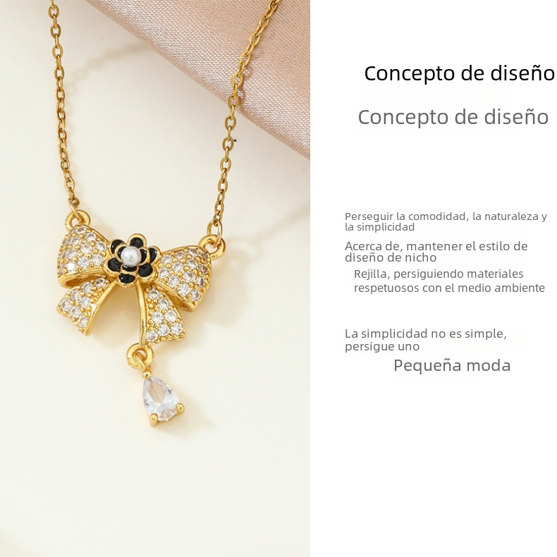 Luz de acero de titanio nicho de lujo arco collar de las mujeres de gama alta de moda todo-fósforo temperamento ZIRCON colgante Internet celebridad mismo estilo de joyería