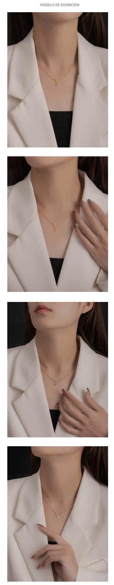 925 plata esterlina nuevo 26 carta collar de las mujeres simple nicho mini nombre inglés brillante plata colgante al por mayor