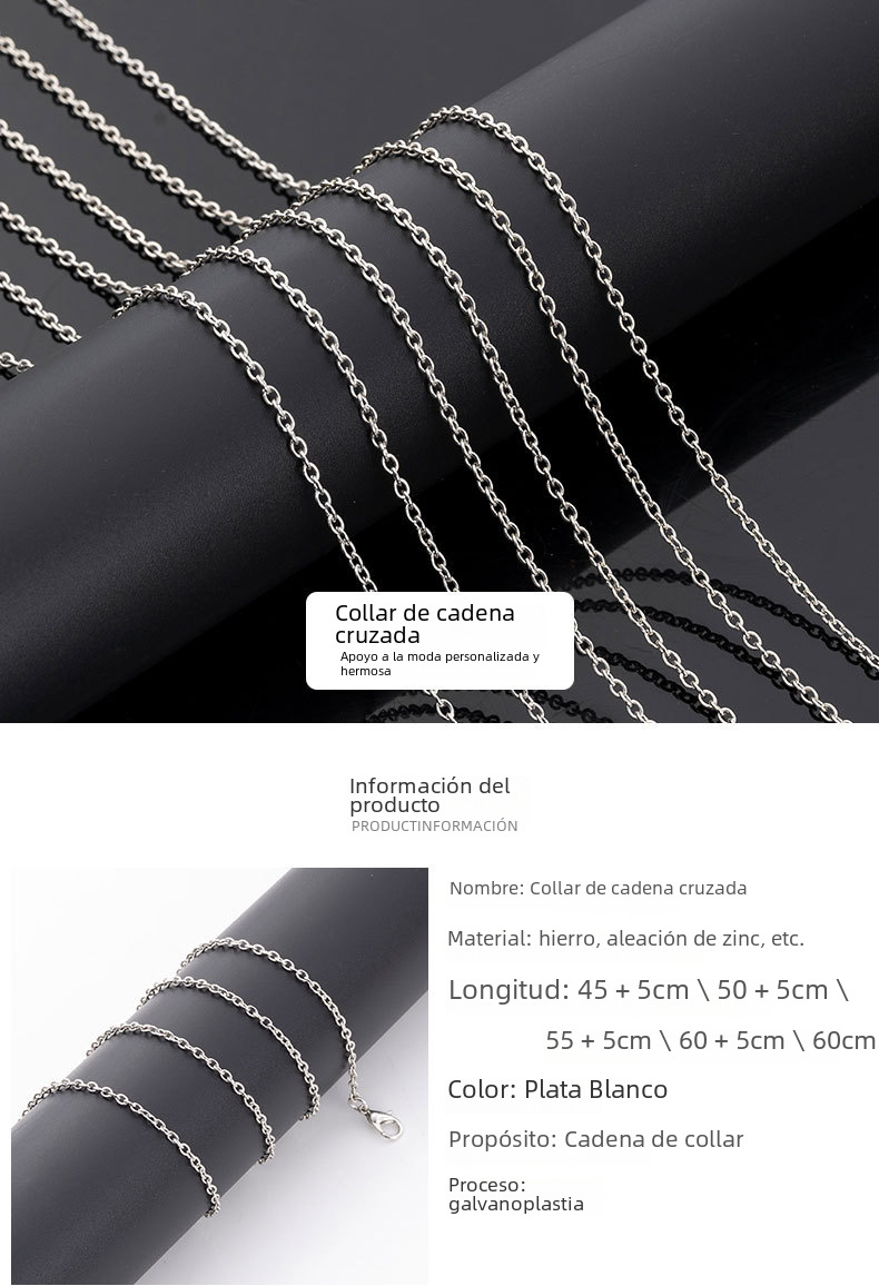 2,4mm cadena cruzada cadena de metal collar de hierro Cadena de clavícula joyería de moda simple todo-fósforo DIY accesorios hechos a mano