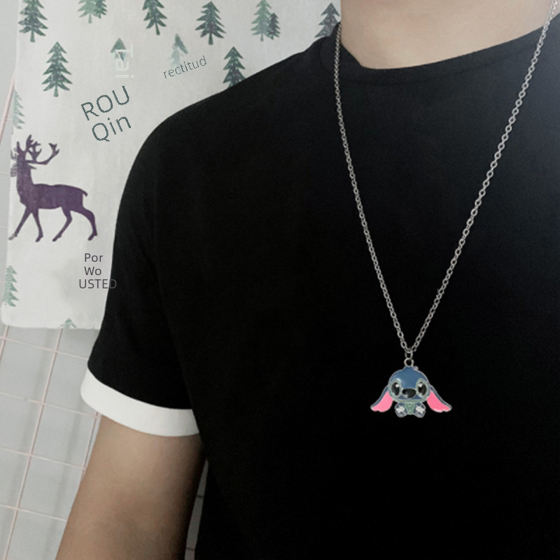 Buen amigo de dibujos animados lindo gran oreja puntada hombres y mujeres pareja collar personalidad hip hop colgante suéter cadena