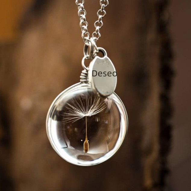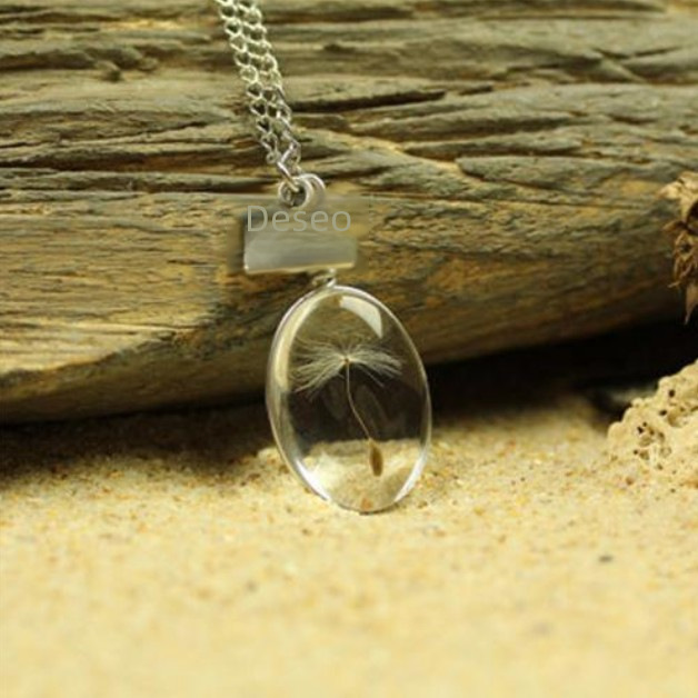 Cruz-frontera diente de león tiempo joya collar en forma de corazón redondo oval de doble cara joya simple collar de cristal