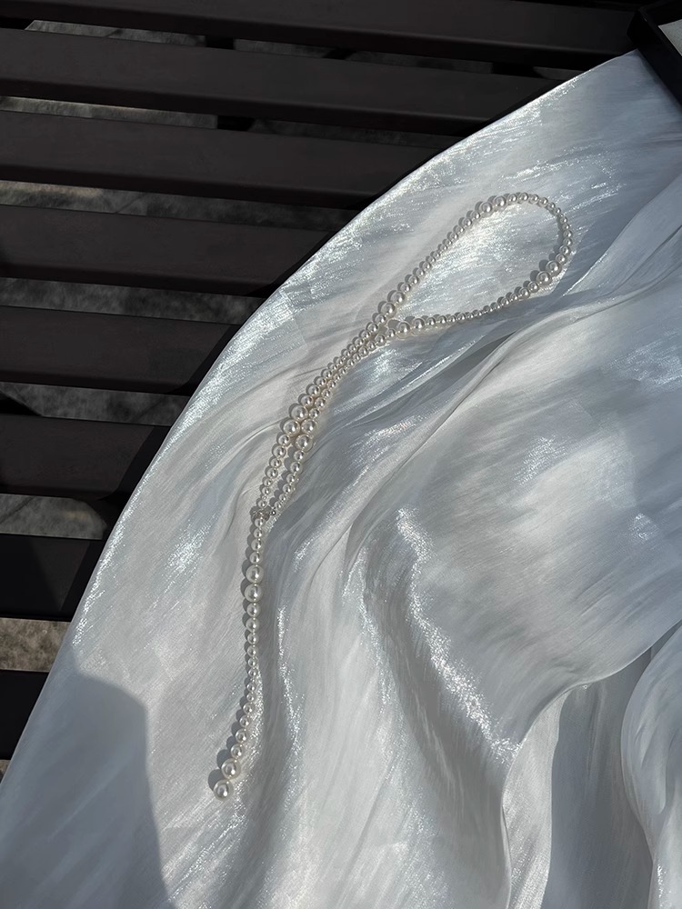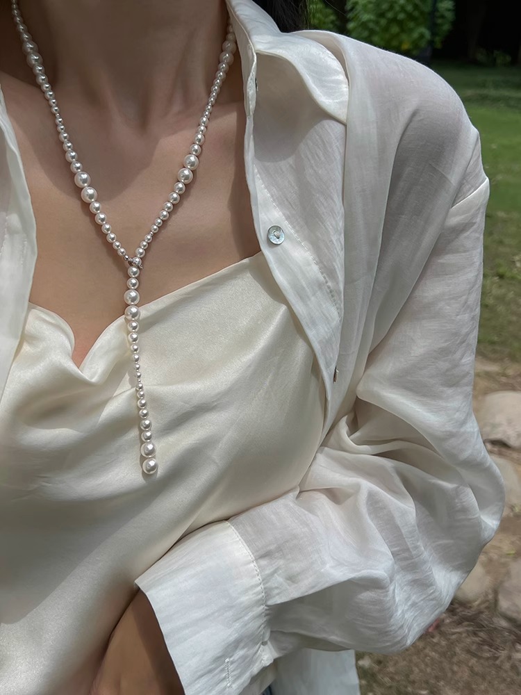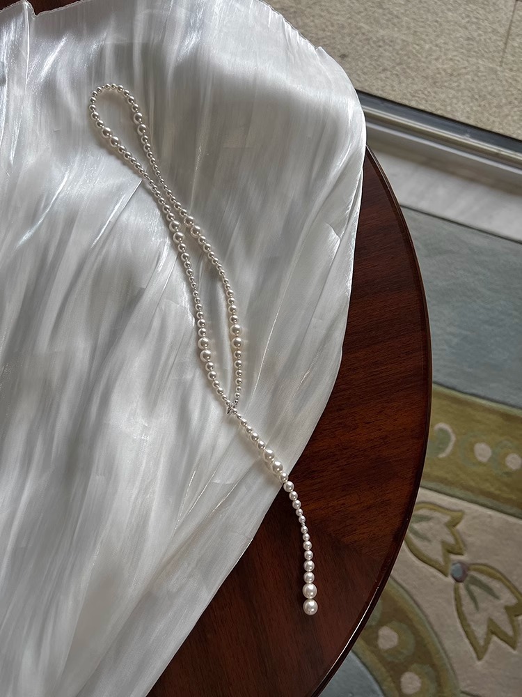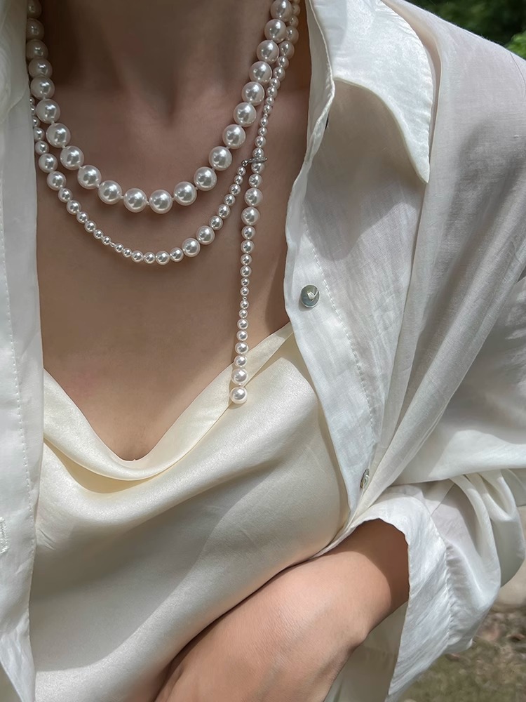 Plata pura ni mismo estilo apilados Shijia perla collar largo luz nicho de lujo alto sentido las mujeres Otoño e Invierno suéter cadena