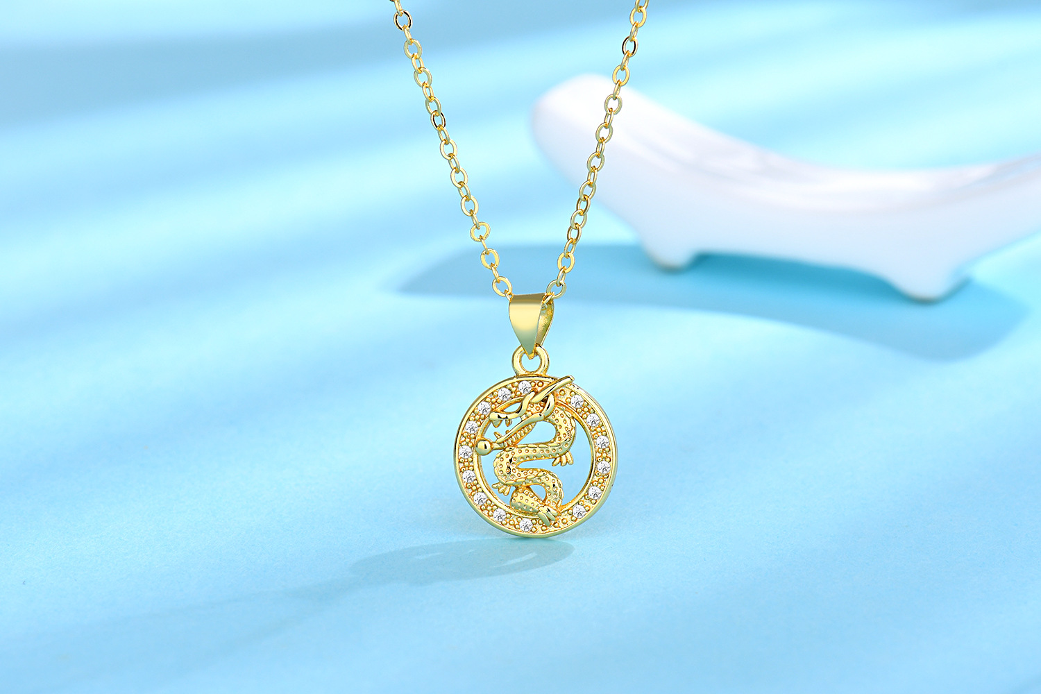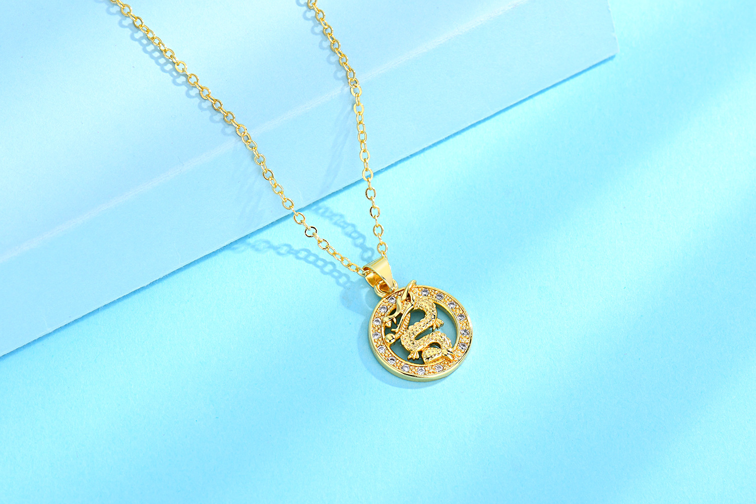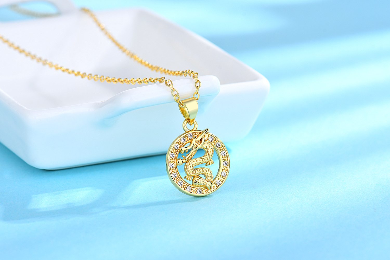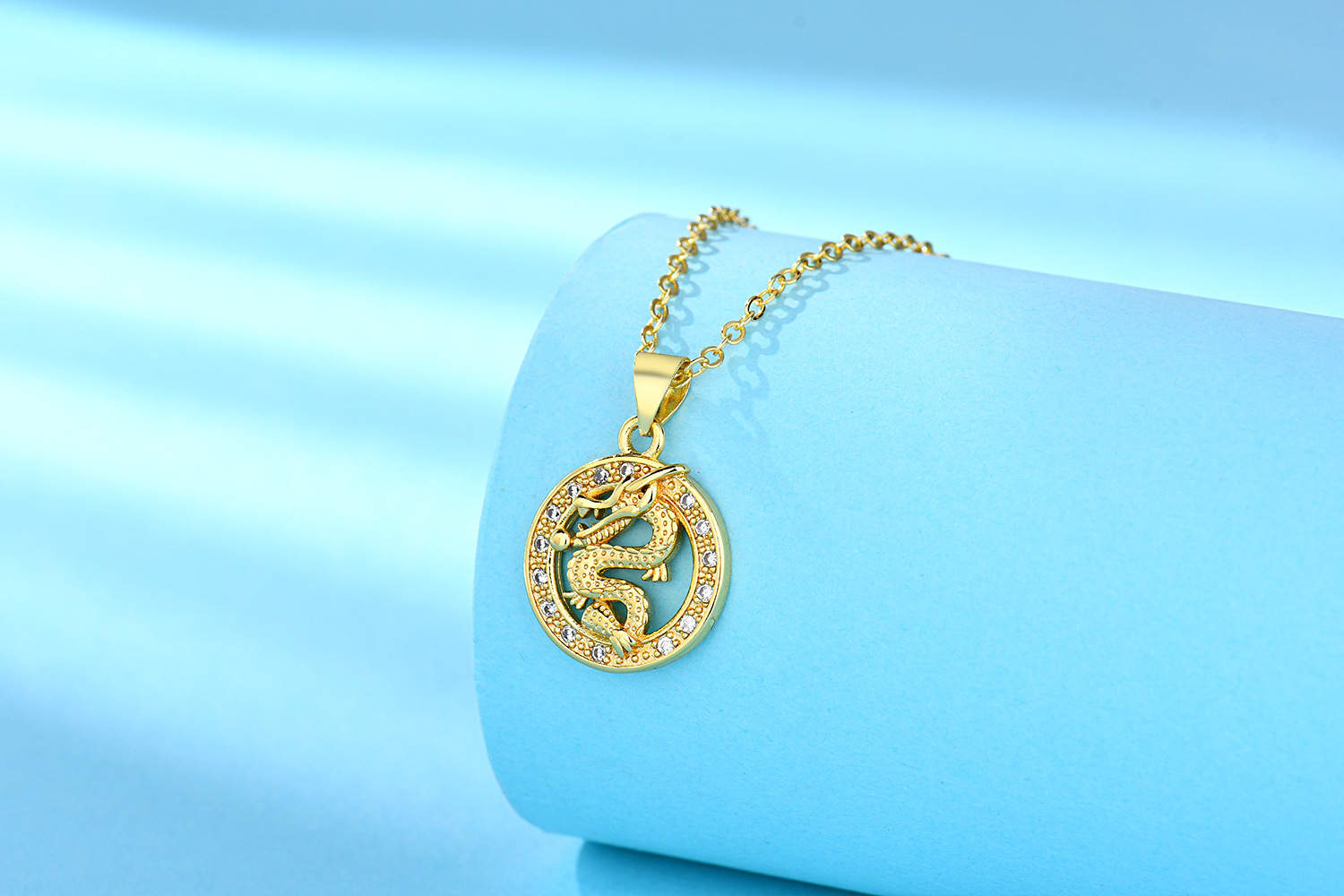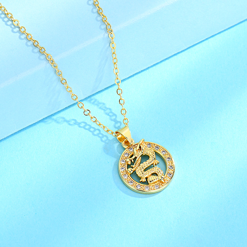 2024 dragón Año Nacional de moda retro Zodiaco dragón colgante redondo 18K chapado en oro de latón chapado en oro colgante personalizado al por mayor