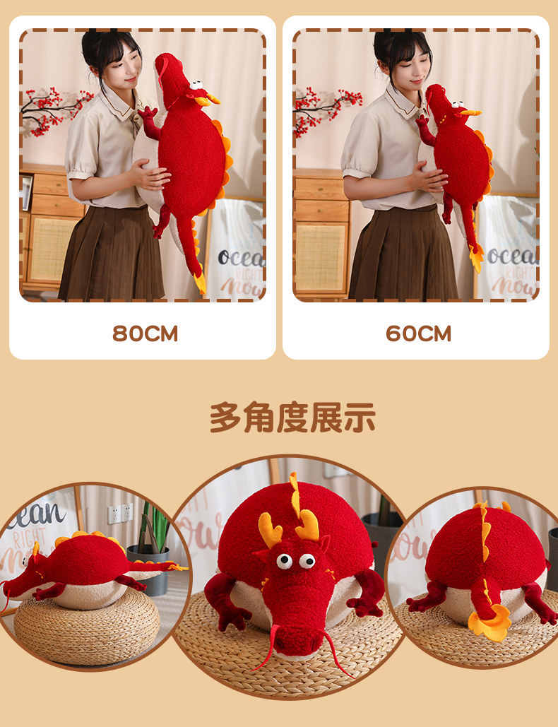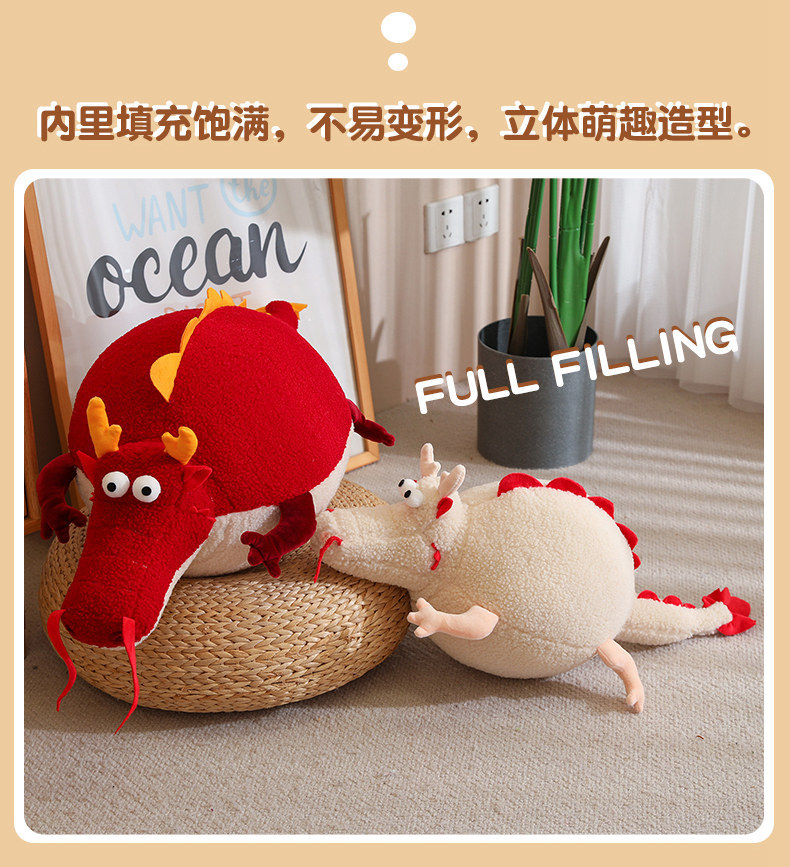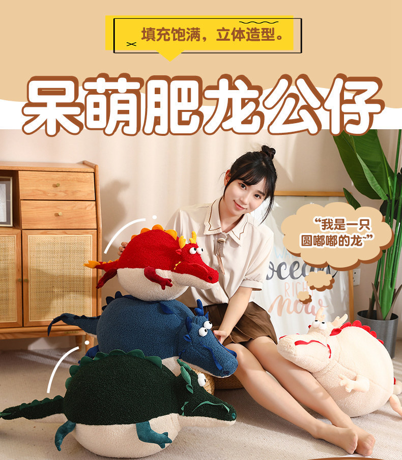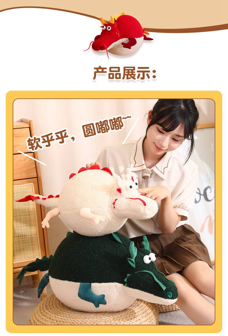 Dragón año mascota lindo redondo rodante muñeca redonda dragón almohada lindo dragón gordo juguete de peluche decoración del hogar cojín