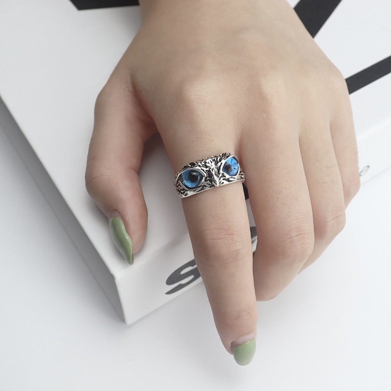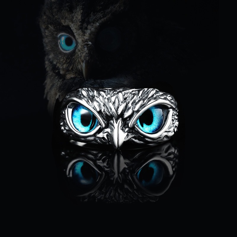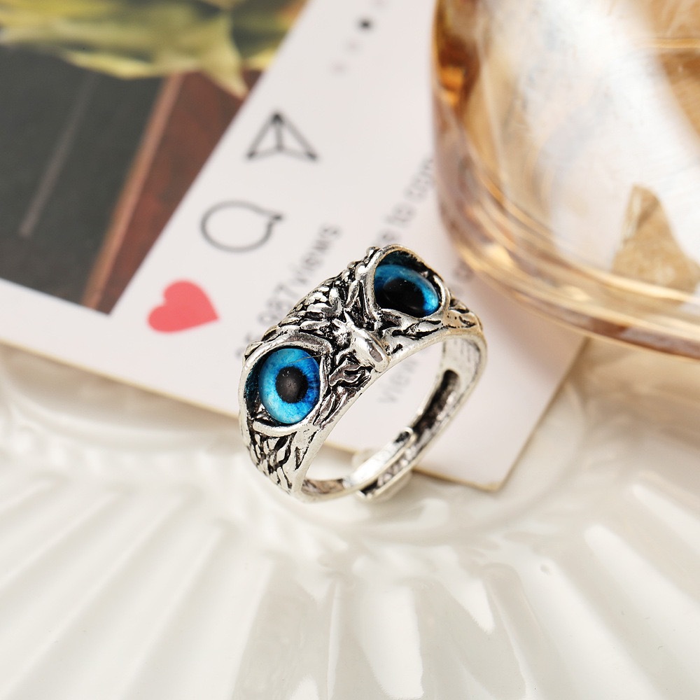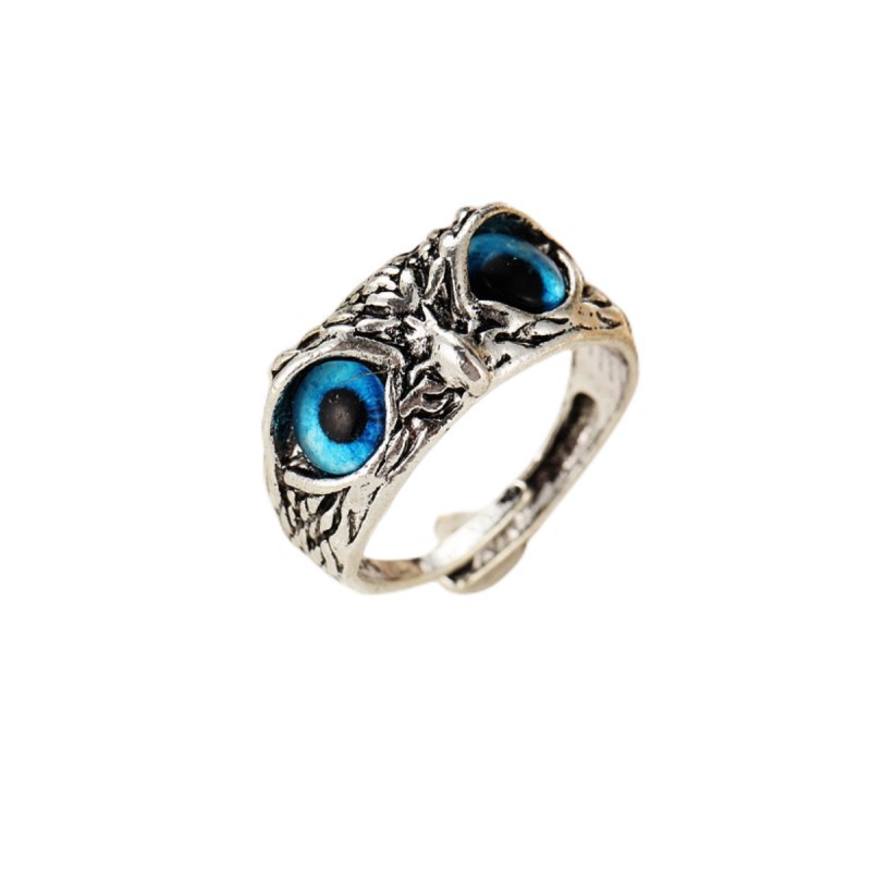 23 años de Venta caliente transfronteriza anillo de búho azul moda creativa ajustable anillo de animales pequeños fabricante de joyas