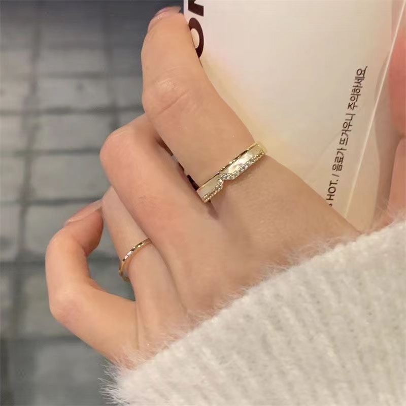 ¡Gran golpe! Cartas de concha Socialite de lujo ligero exquisito anillo apilado femenino ins nicho anillo de moda de alto grado