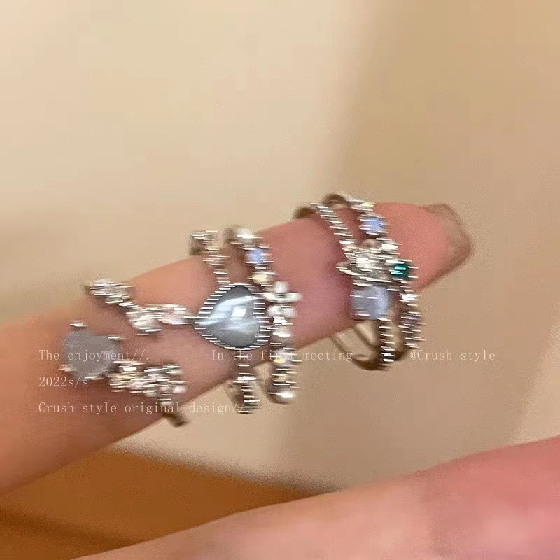 Mar azul amor luz de la luna circón anillo abierto nicho de lujo ligero femenino anillo de dedo índice de alto grado exquisito anillo ajustable