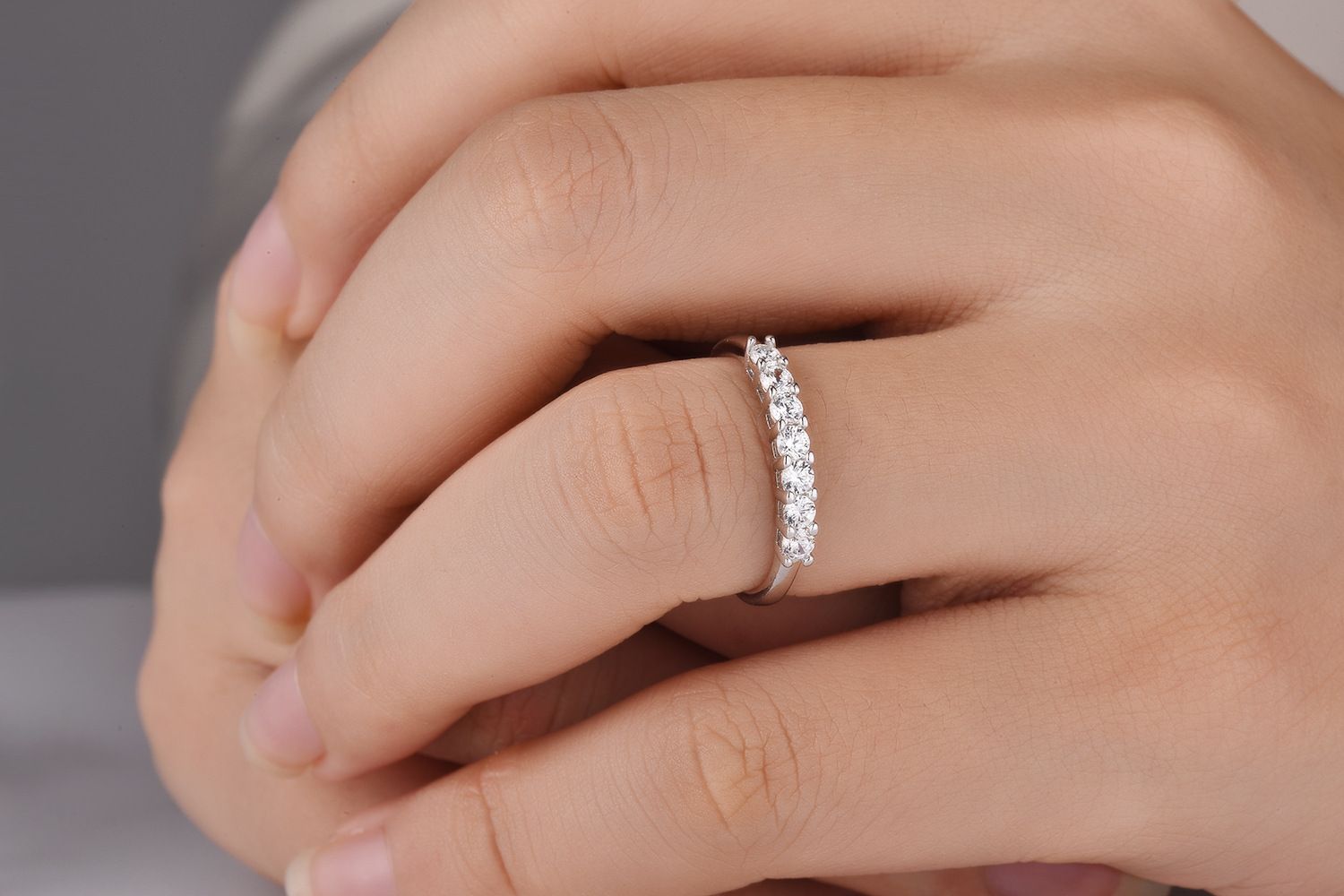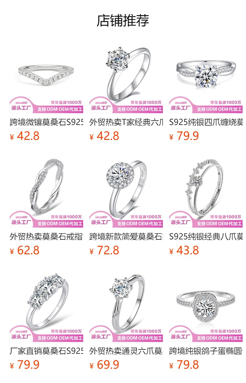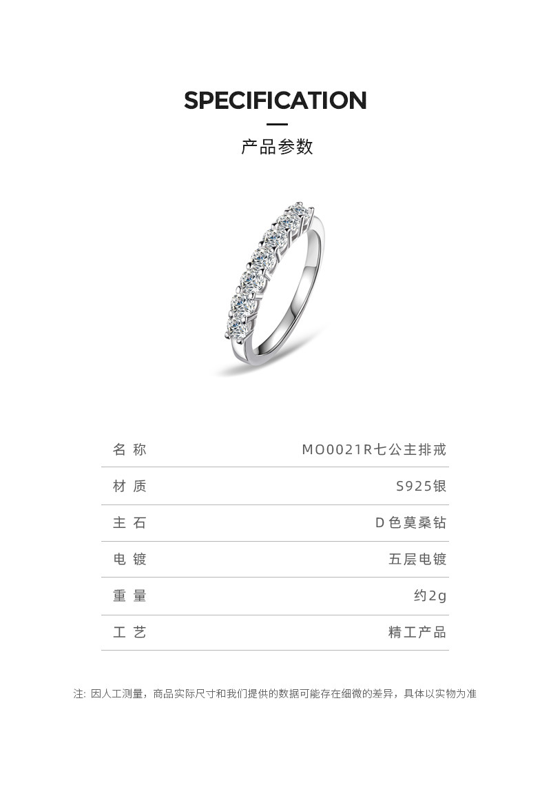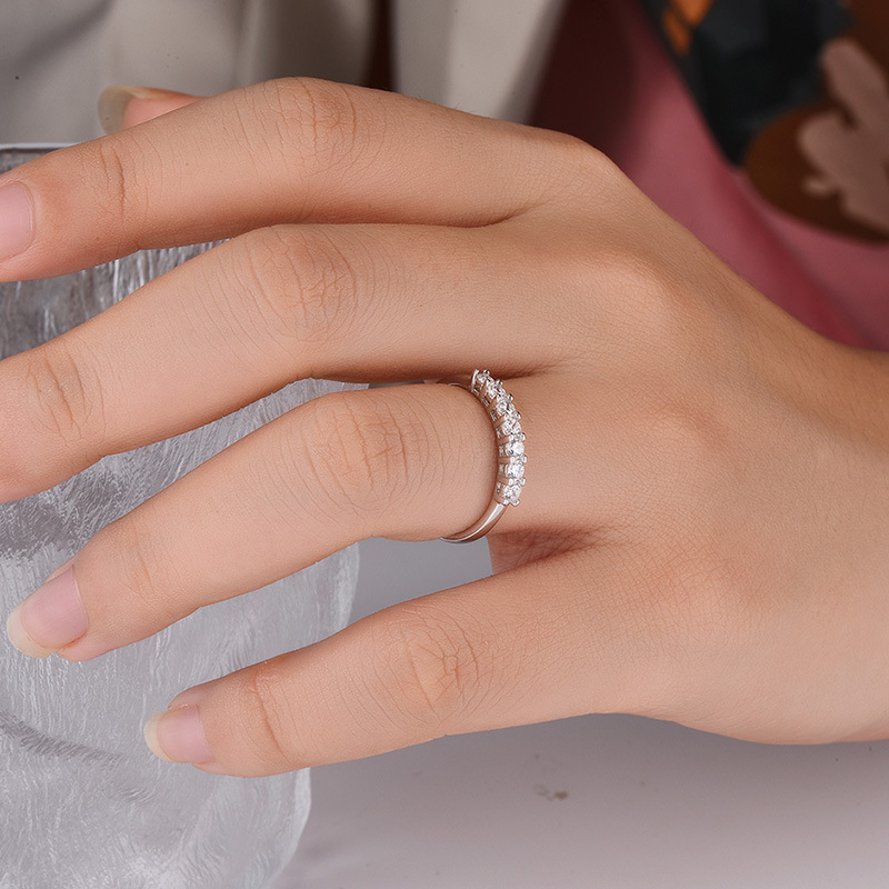 D-color moissanite siete princesa plata esterlina anillo femenino apilado europeo y americano de los hombres y las mujeres de una sola fila simple fuente del anillo de la fábrica