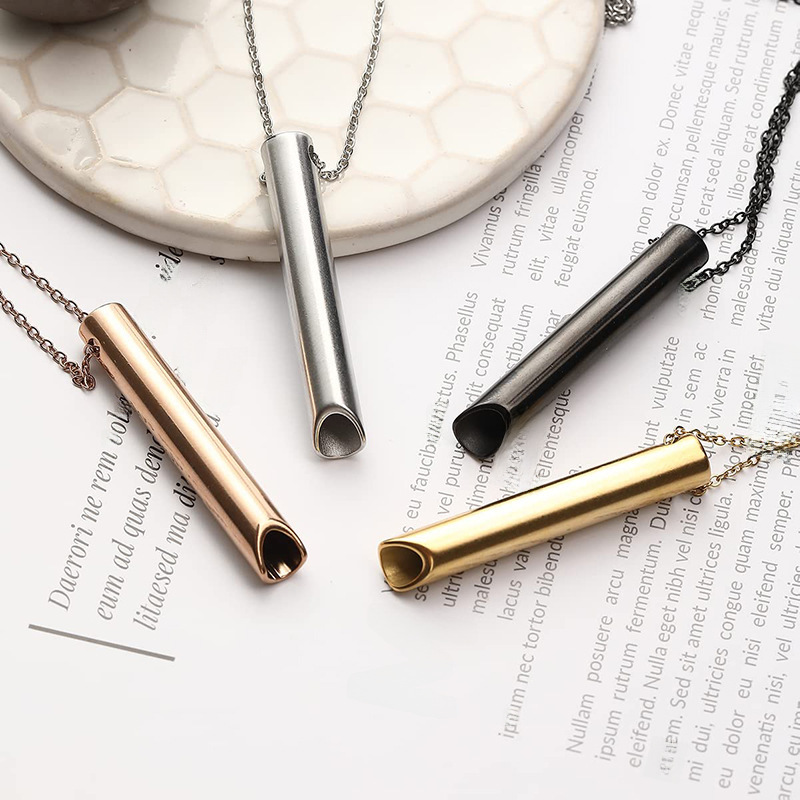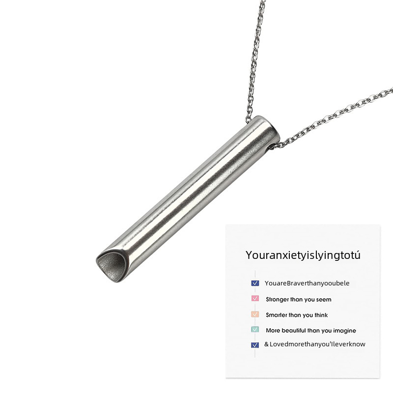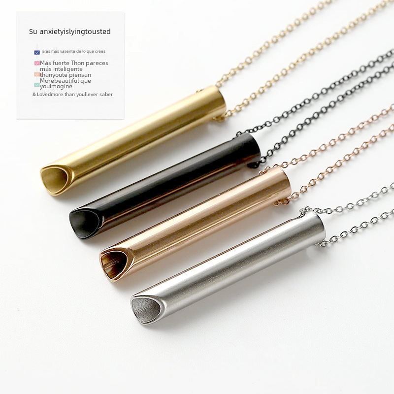 Transfronterizo de venta caliente de acero inoxidable de vacío plateado silbato collar de meditación de alivio de la meditación de meditación tridimensional ajuste de respiración colgante