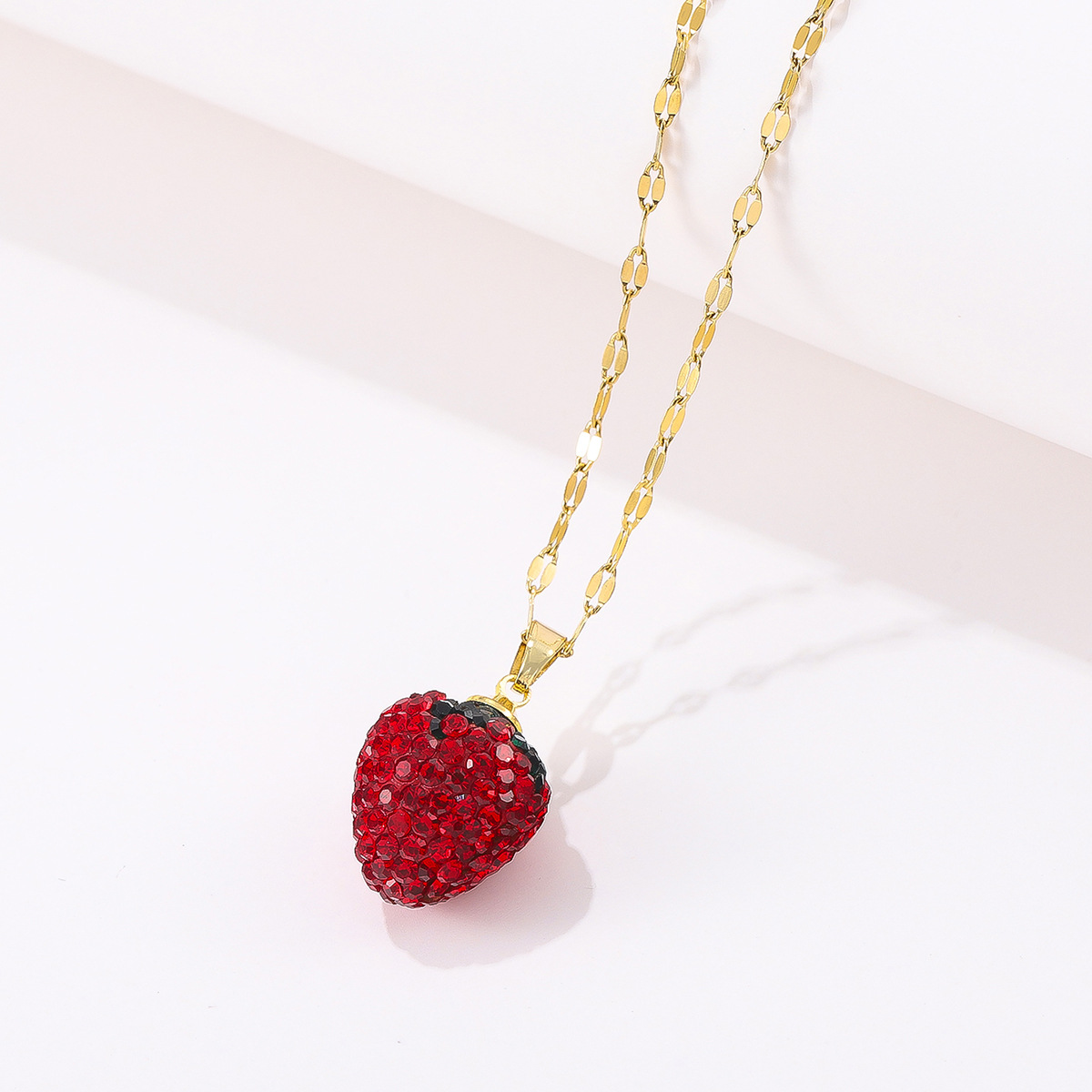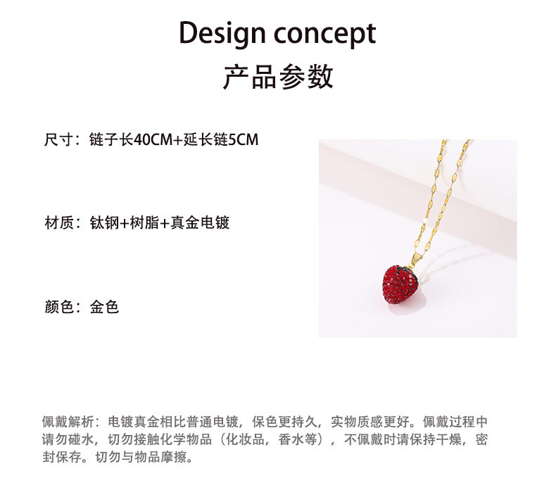 Venta caliente especial transfronteriza nuevo diamante completo fresa fruta colgante collar mujer Comercio exterior titanio acero labio cadena joyería al por mayor