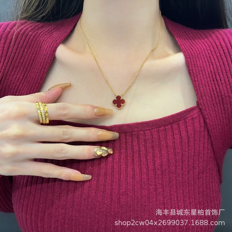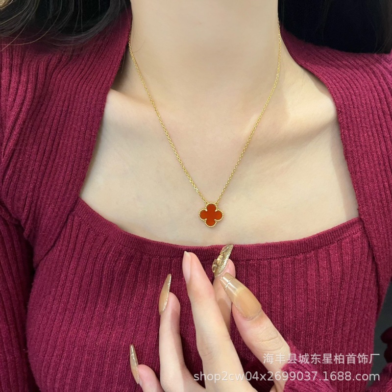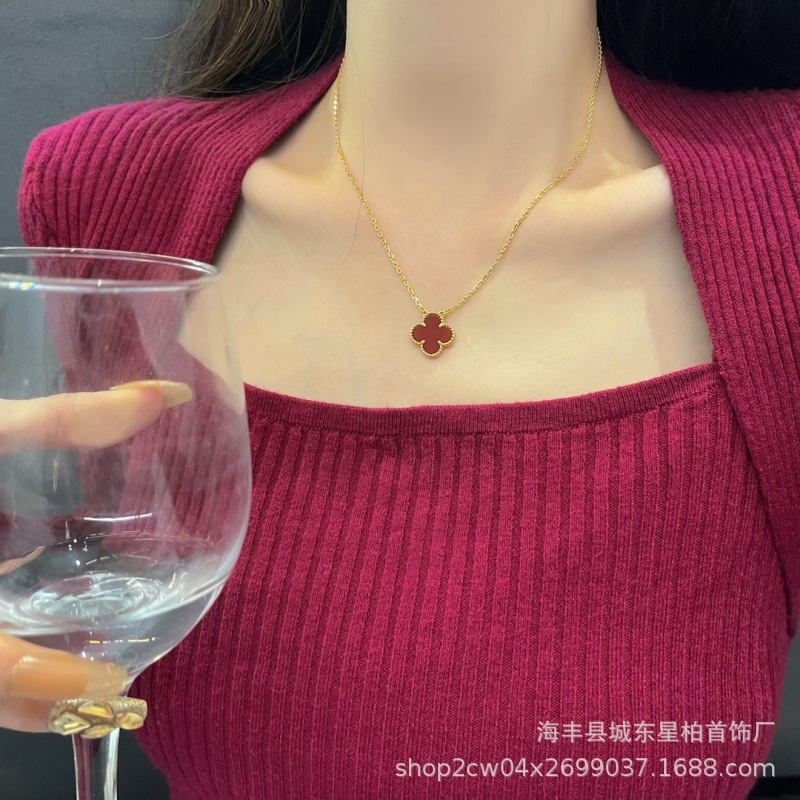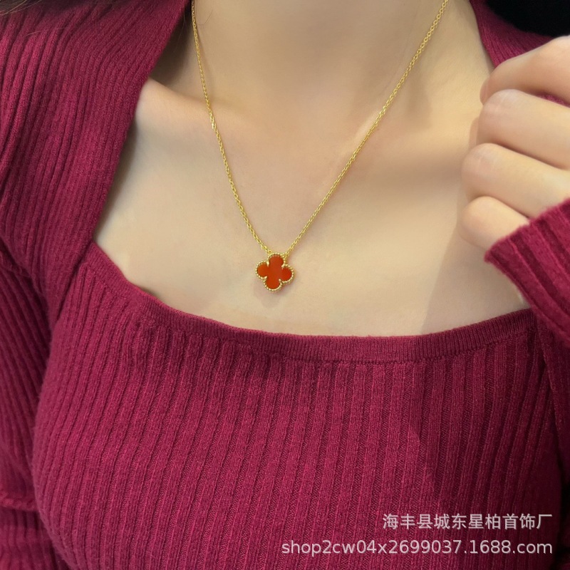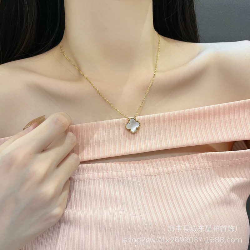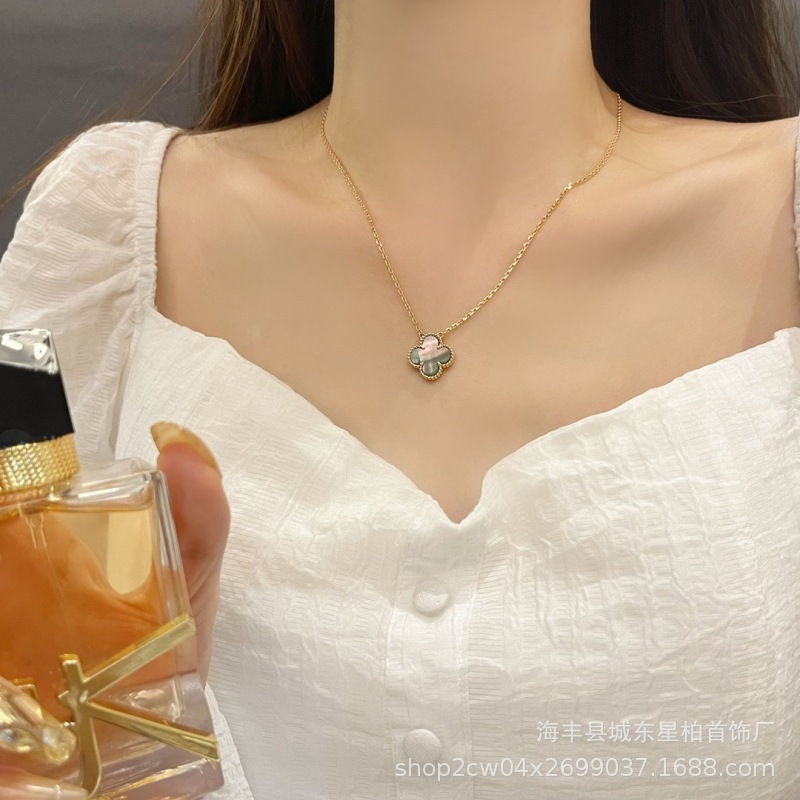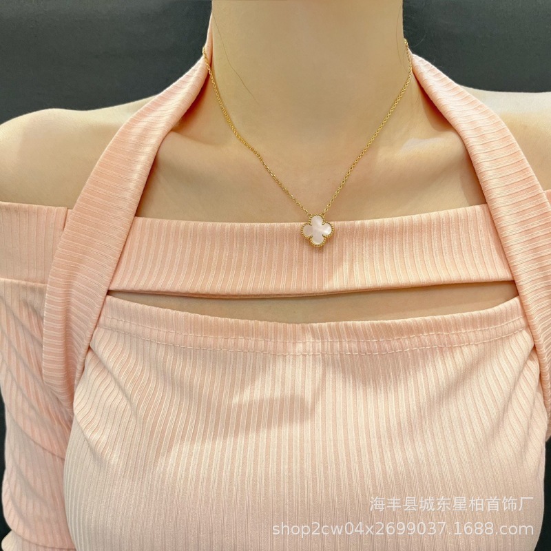 Fanjia Alta versión del trébol collar femenino s925 plata esterlina 18K de oro rosa de doble cara clásico colgante de luz de lujo de la joyería