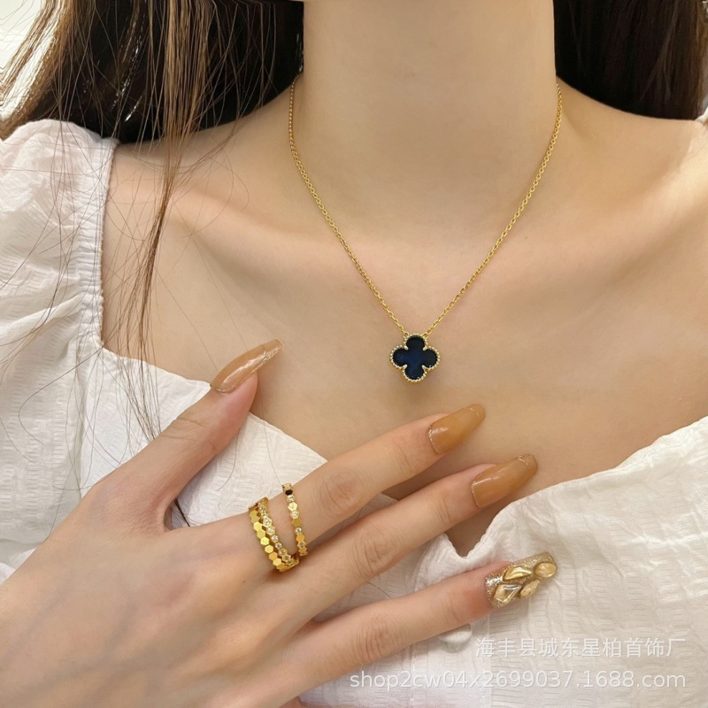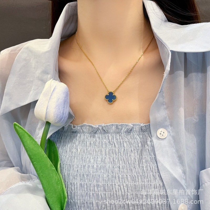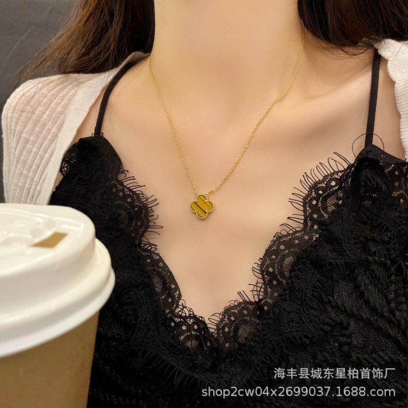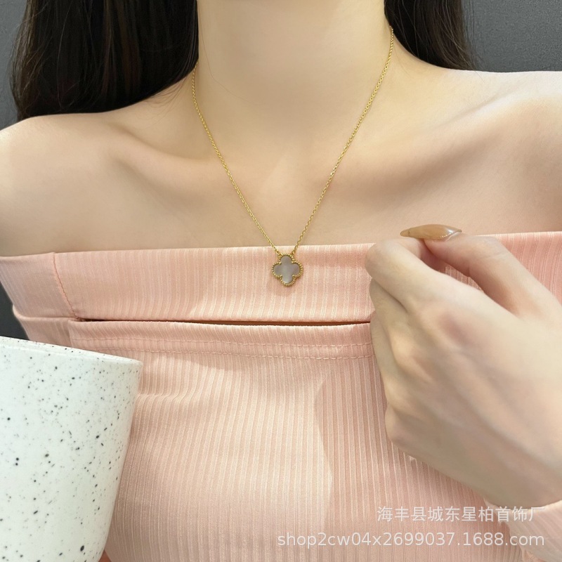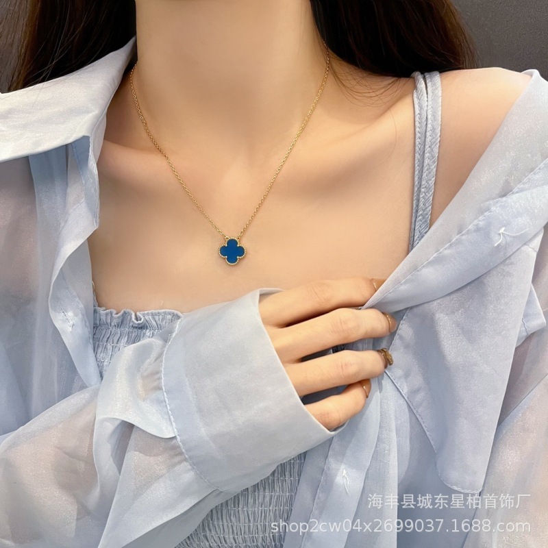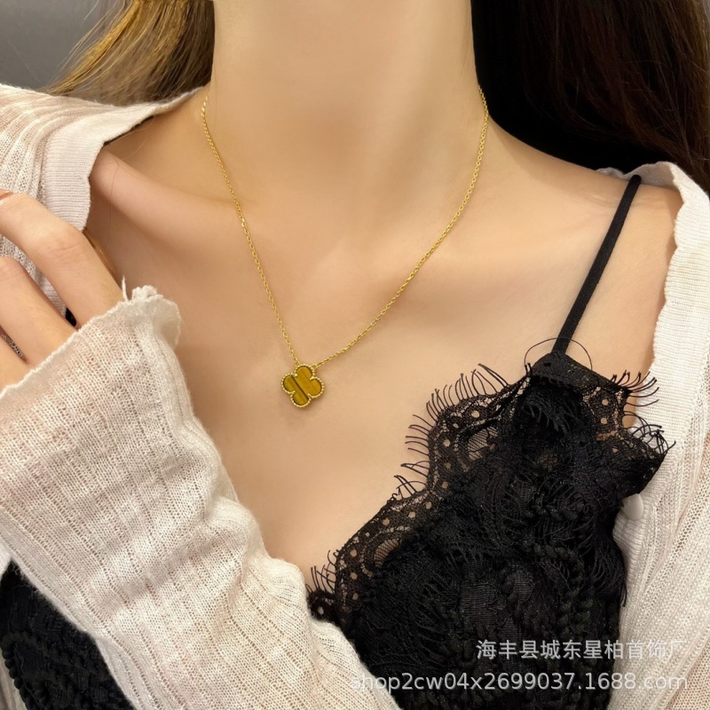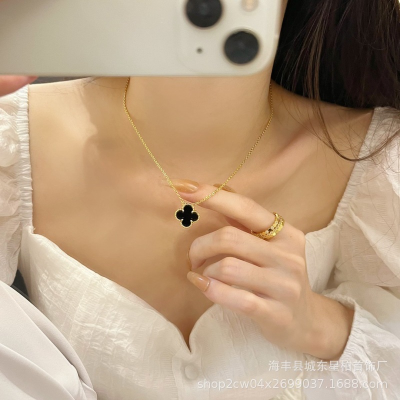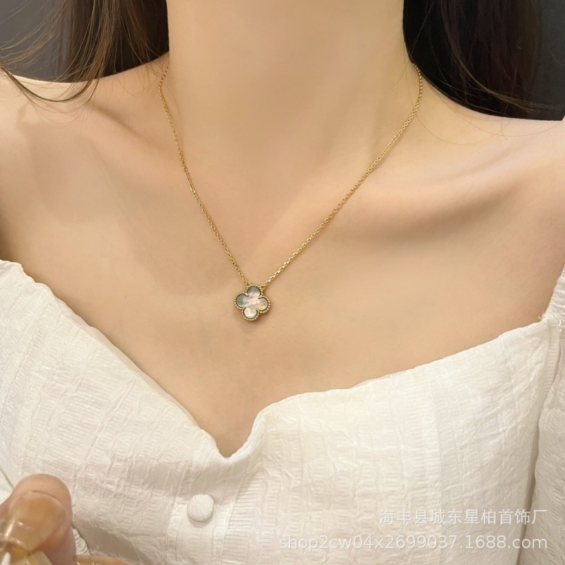 Fanjia Alta versión del trébol collar femenino s925 plata esterlina 18K de oro rosa de doble cara clásico colgante de luz de lujo de la joyería