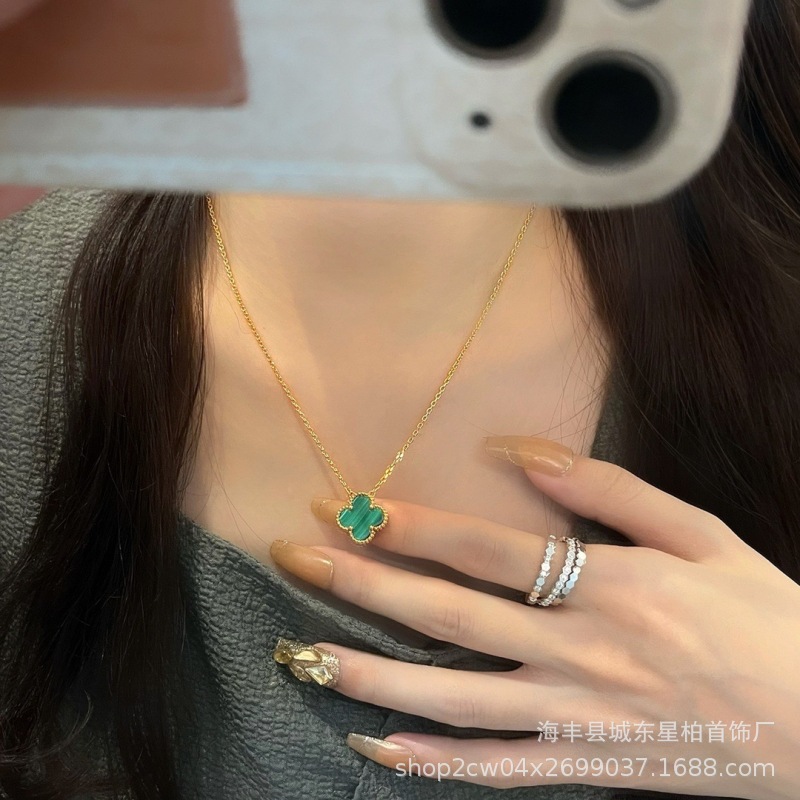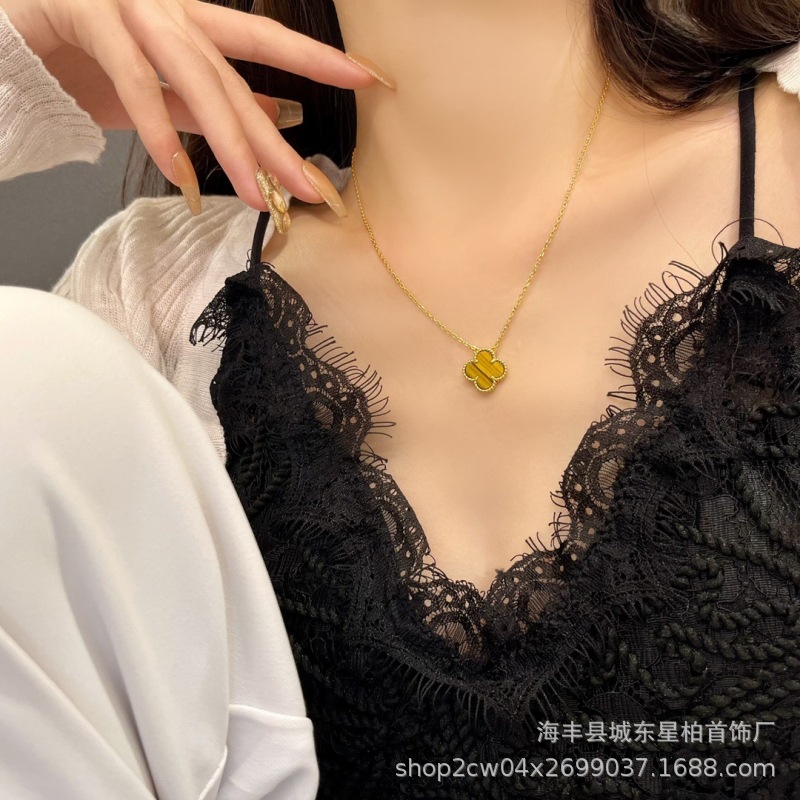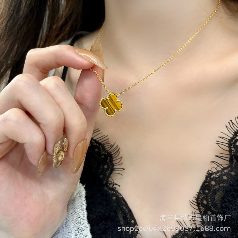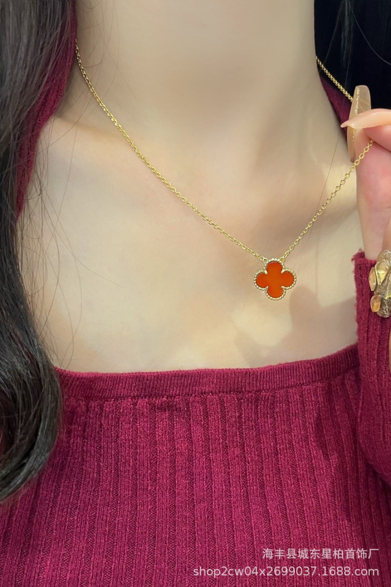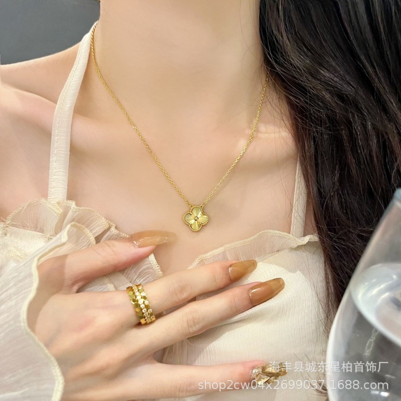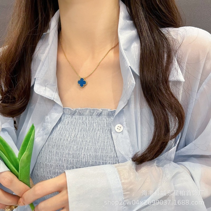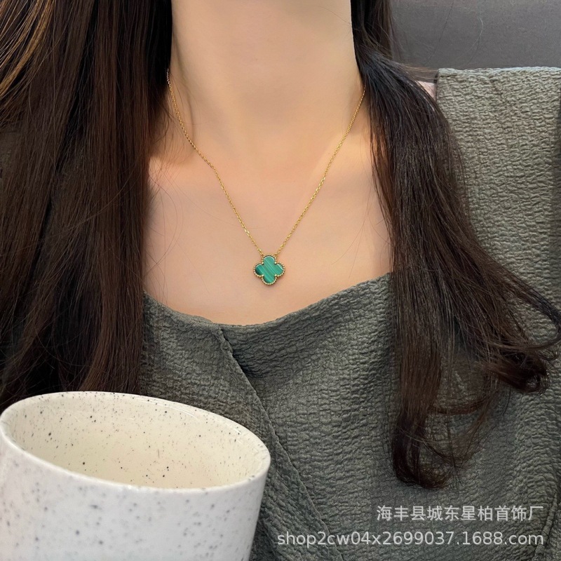 Fanjia Alta versión del trébol collar femenino s925 plata esterlina 18K de oro rosa de doble cara clásico colgante de luz de lujo de la joyería
