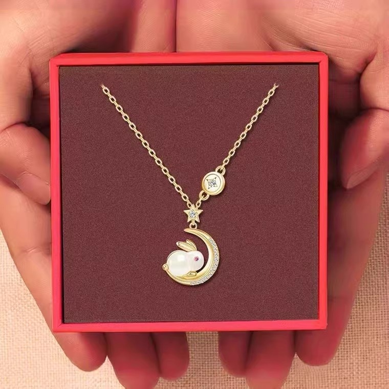 2023 nueva llegada estrella Luna Jade conejo collar nacimiento año moda conejito no desvanecimiento clavícula cadena regalo de cumpleaños para las mujeres